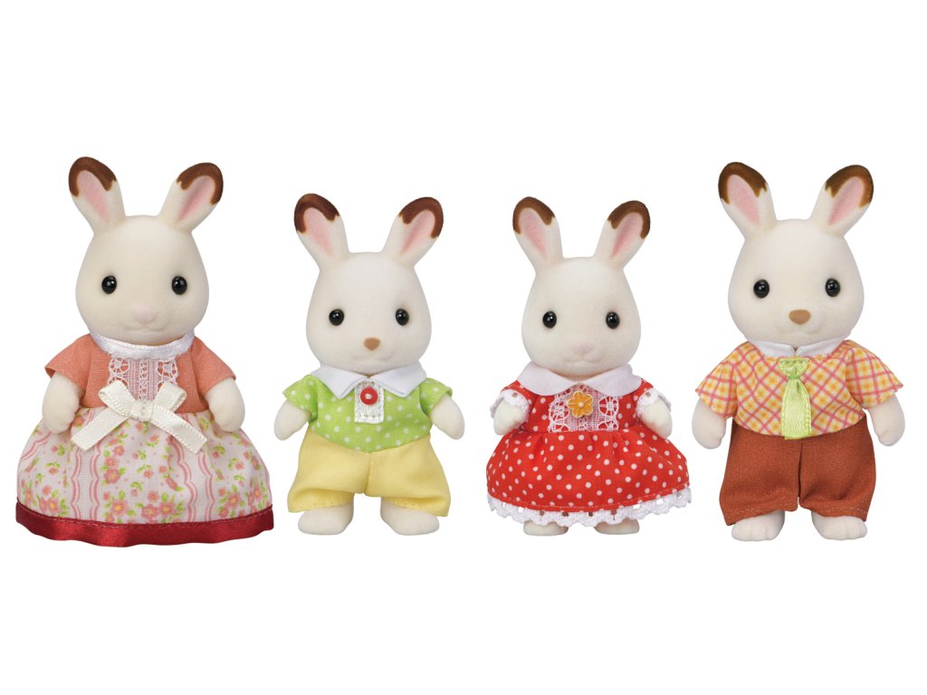 Apa, anya és 2 gyermek a Csokinyuszi kollekcióból. A figurák műanyagból készültek, finom szőrmével bevonva. Anya, apa magassága: 9,5 cm. Fiú és lány tesó: 8 cm magasság. A figurák feje forgatható, és minden végtagjuk mozgatható. Minden figura ruhája levehető. Életkor: 3+