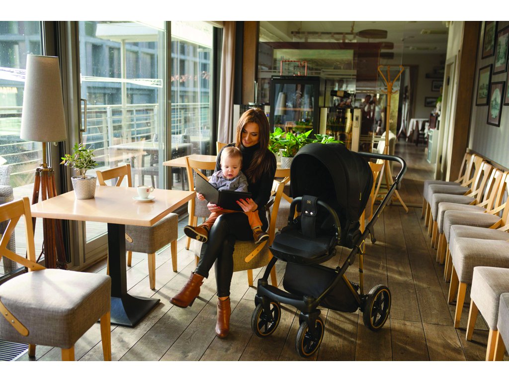 A készlet számos hasznos tartozékot is tartalmaz, amelyek segítik a mindennapi szervezést, mint például a tágas táska + táskapánt, esővédő, szúnyogháló, kesztyű és pelenkázó alátét.