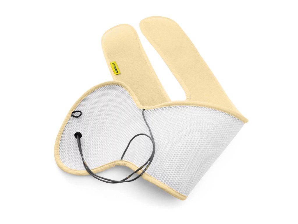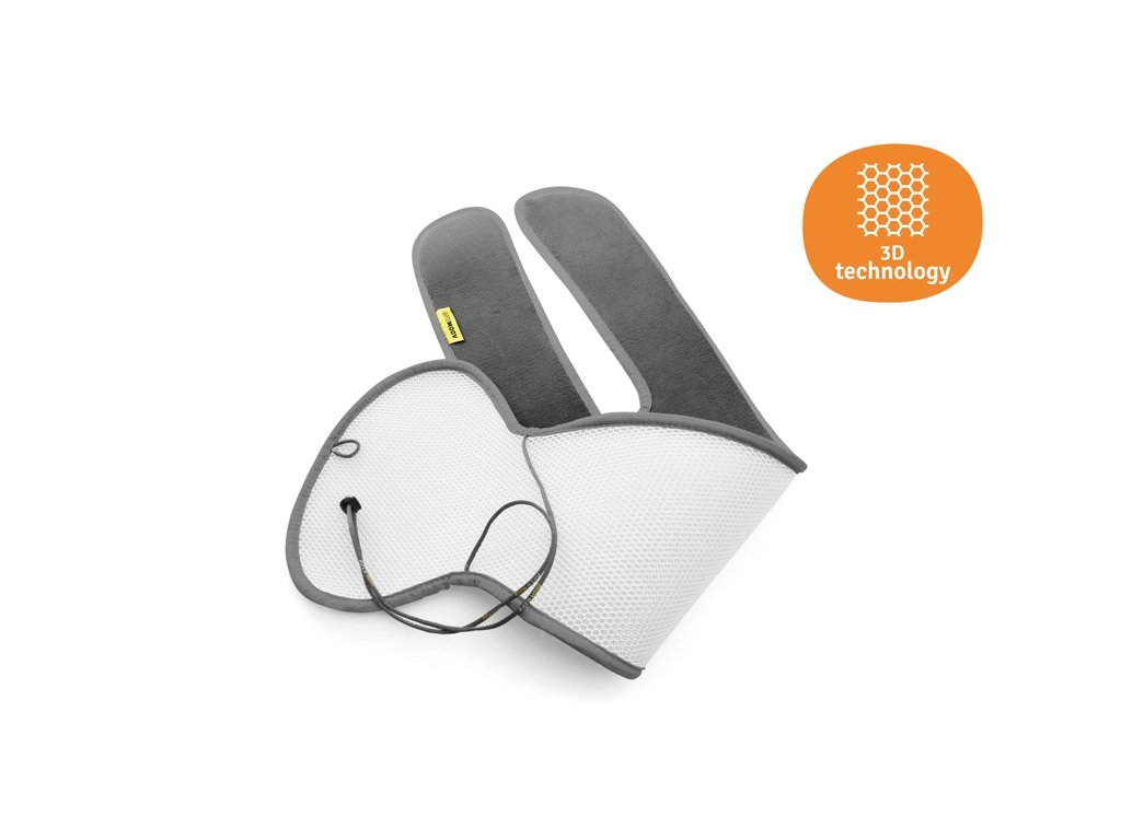 - úgy van kialakítva, hogy a biztonsági övek ne akadályozzák a használatban (nyílás a középső csatnak, oldalsó forma az övek vállrészeihez), a csatnyílásnak köszönhetően a betét nem csúszik el