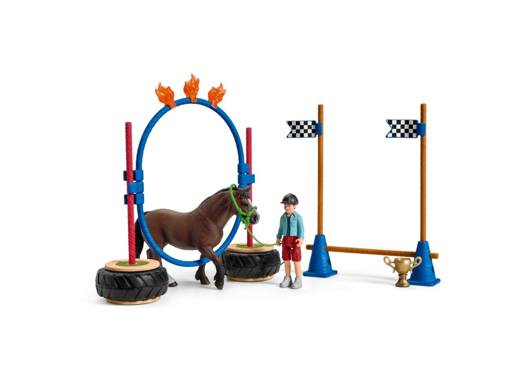 A Schleich® figurák mindegyike a legfinomabb részletekig kidolgozott, szeretettel festett, és arra ösztönzi a gyerekeket, hogy játsszanak és tanuljanak egyszerre. Ha a póni sikeresen befejezte a képzést, részt vehet az Agility versenyen. Az elvárások magasak, és a hangulat feszült! A póni megijed, vagy biztosan leküzdi az akadályokat? Az Agility legalább annyira izgalmas, mint a lovaglás. A kiterjedt edzés elengedhetetlen feltétele az agility versenynek. Az akadályok tetszés szerint kombinálhatók. Nagy és kis lovak számára egyaránt alkalmas. A figurák végtagjai mozgathatók. Csomagolási méret: 19 x 6,6 x 15 cm. Méret kb: 26 x 30 x 15 cm. 3 éves kor alatti gyermekek számára nem alkalmas. Ajánlott életkor: 3-8