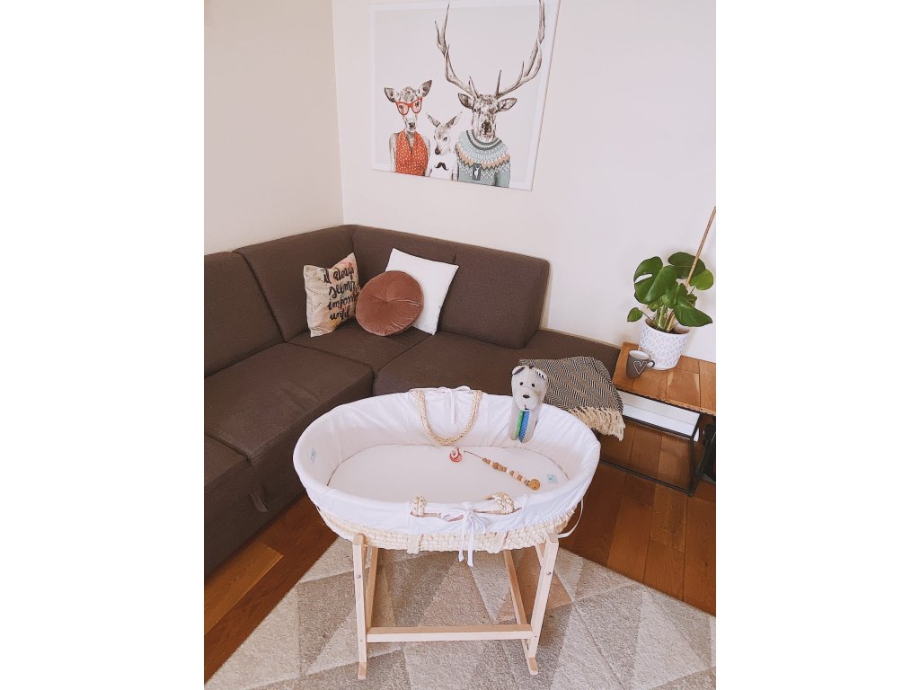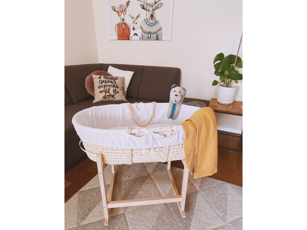 Kombinálva egy kosárral az állványt használhatja első kiságyként a baba számára.
