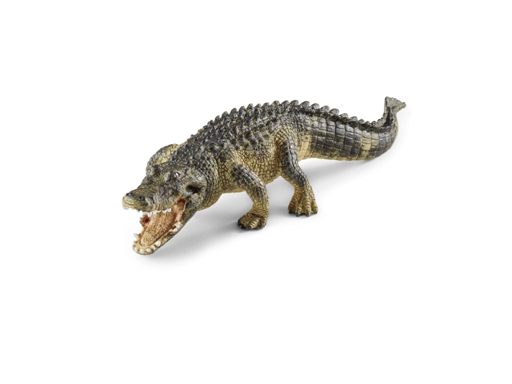 Az aligátorokat az alsó állkapcsukról könnyen fel lehet ismerni. A benne lévő fogak oldalról nem láthatók. Az aligátor egy nagyon veszélyes ragadozó, rendkívül erős állkapocshajlító izmokkal. Csak a fehér cápa tud erősebben harapni nála. Érdekesség: Csak az állkapcsot záró izmok ilyen erősek. Az állkapcsot nyitó izmok annyira gyengék, hogy egy egyszerű ragasztószalaggal be lehetne kötni őket. A tengeri krokodilhoz képest az aligátor kisebb és érezhetően szélesebb. Kizárólag az USA és Kína délkeleti részén lévő folyókban és tavakban él. Oldalról nézve az aligátor úgy tűnik, mintha vigyorogna. A figura mozgatható alsó állkapoccsal rendelkezik. Mérete: 19 x 3,7 x 5,9 cm. 3 éves kor alatti gyermekek számára nem alkalmas. Ajánlott életkor: 3-8