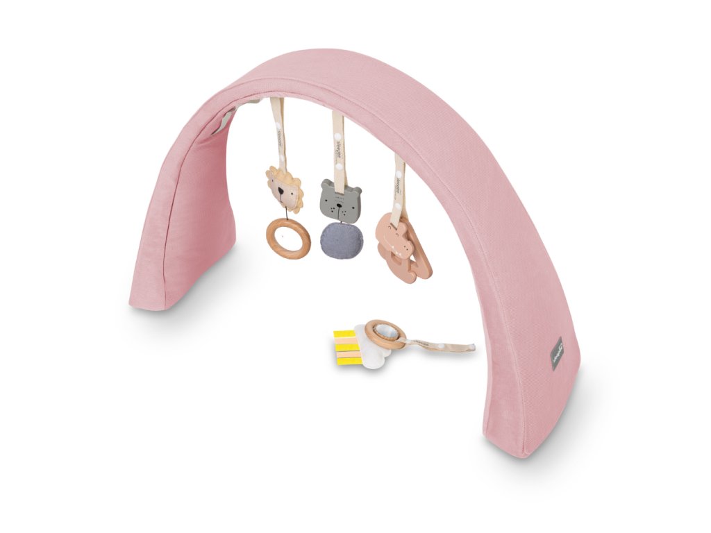 A baba játékív 4 játékot tartalmaz minőségi, ártalmatlan anyagokból – tükörrel, rágókával, csörgővel és egyéb szenzoros elemekkel.