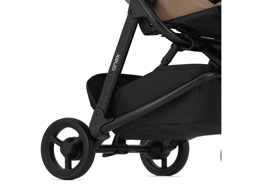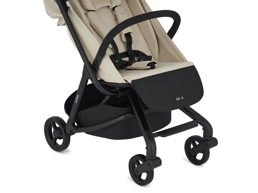 Az Anex Air-Z nagyon jól kezelhető és praktikus babakocsi. Alapfelszereltsége tartalmaz egy bevásárlókosarat, egy levehető ütközőt és egy U alakú párnát.