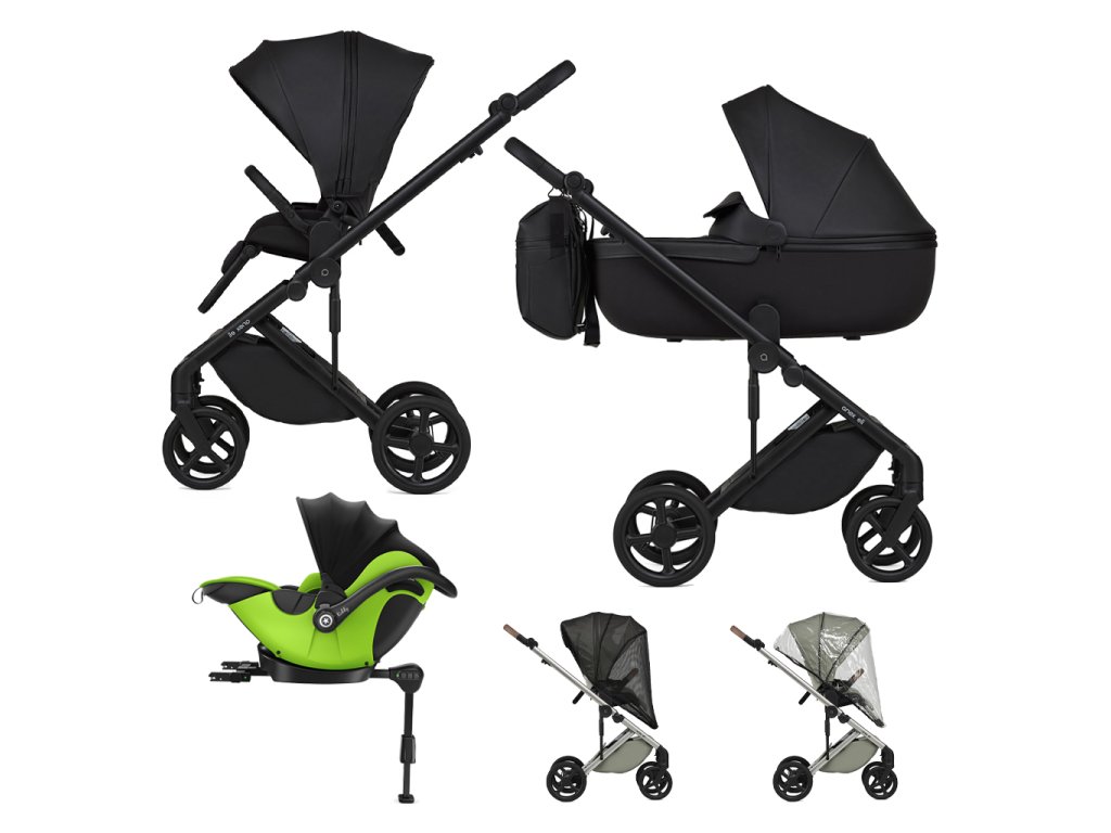 Tartalma: mózeskosár, sportrész, magasító adapterek, elegáns hátizsák, esővédő, szúnyogháló, kapaszkodó. A babakocsihoz tartozik még egy Kiddy Evoluna i-size 2 autósülés is isofix talppal együtt.