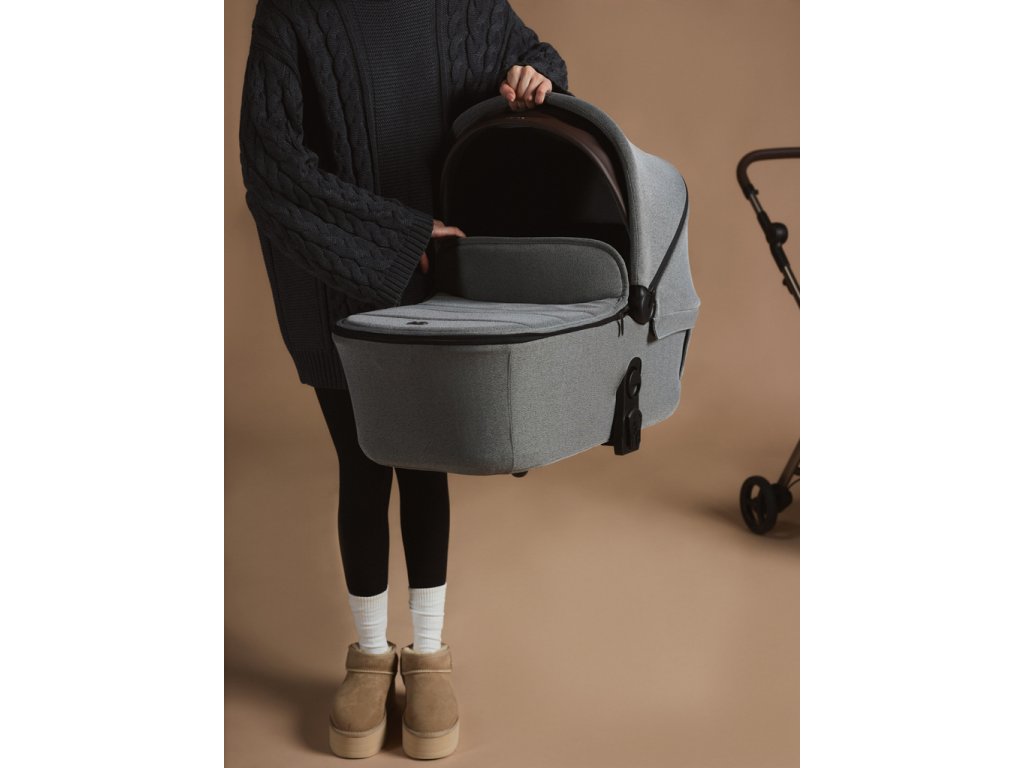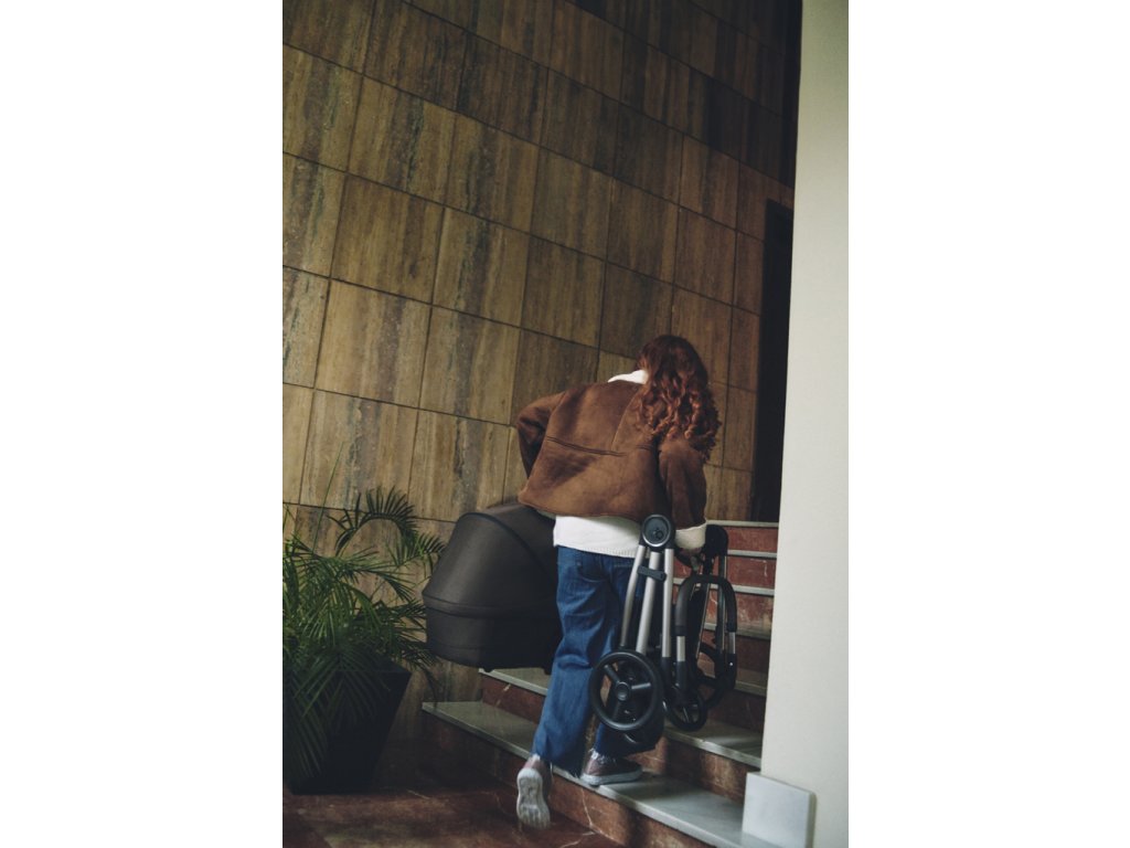 Maximális kompaktság, hogy elférjen az autóban, a repülőgépen, és még helyet is takarítson meg otthon. A váz mindkét irányban összecsukható az üléssel együtt, és a mózeskosár még kézipoggyász méretűre is összecsukható. A könnyű szerkezet lehetővé teszi a babakocsi egy kézzel történő szállítását, akár a mindennapi életben, akár nemzetközi utakon.