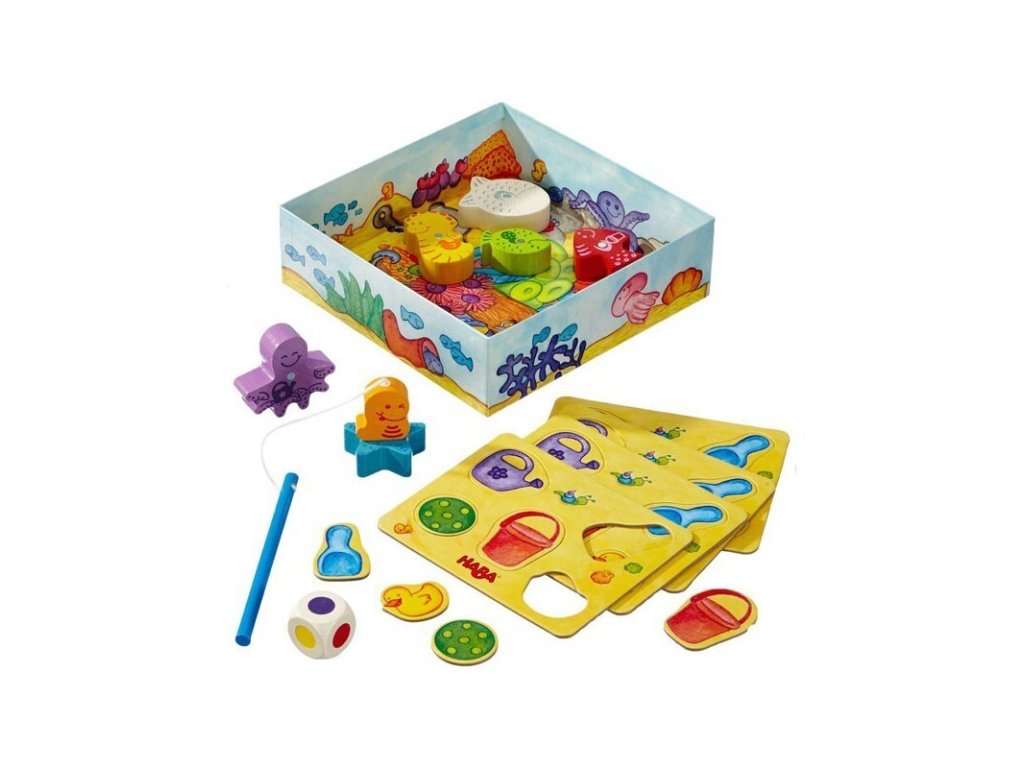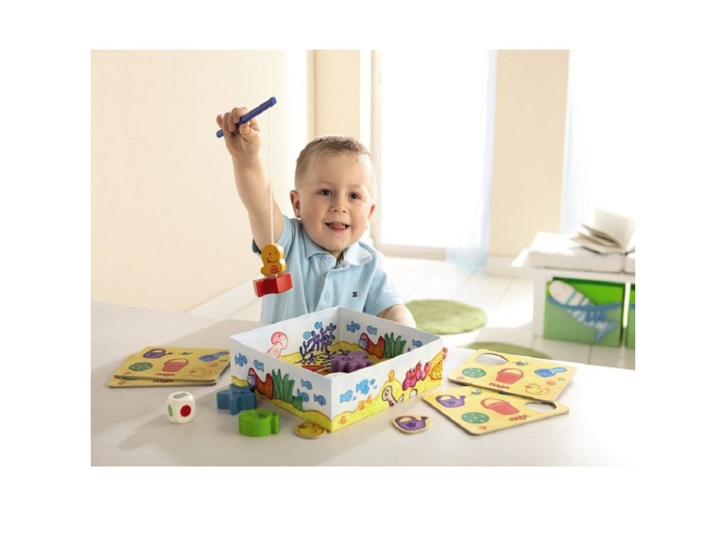 A szórakoztató mágneses horgász társasjáték számos játékverziót kínál. A szabályok nélküli szabad horgászat ideális játék a legkisebbek számára, akik fejleszthetik motoros készségeiket és mozgáskoordinációjukat. Vond be a játékba a kockát és a szabályokat, és magasabb játékosi szintre léphetsz – ideális a teljesen kezdőknek, akik még soha nem játszottak szabályok szerint.