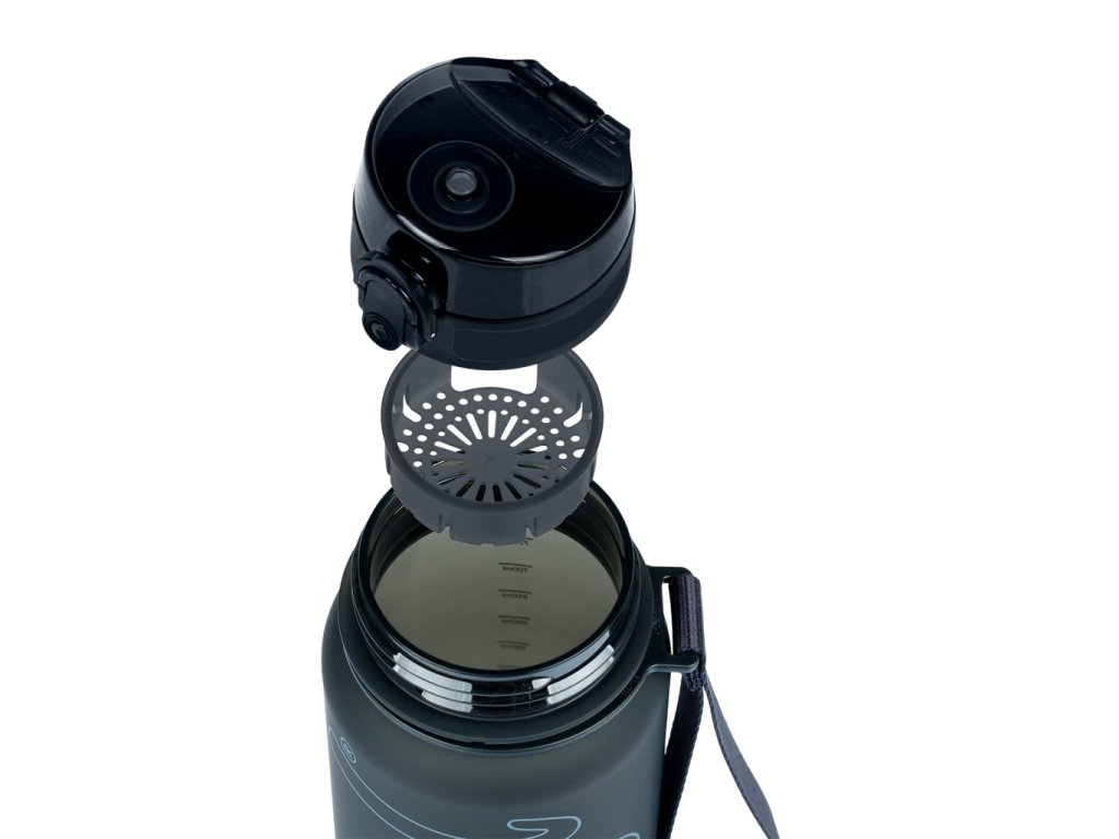 BAAGL Black 800 ml-es tritán kulacs. Egy rendes kulacs nem hiányozhat az iskolai felszerelésből. A BAAGL kulacs iskolába, kirándulásra és sportkörre is alkalmas. A zárható fedél egyetlen csepp italt sem enged át, és egyszerű, intuitív kezelést biztosít. A kulacshoz tartozik egy szűrő, melynek köszönhetően a kulacs gyümölcsös limonádéhoz vagy teához is használható (az anyag forró italokhoz is alkalmas). A palackhoz egy hurok van rögzítve, amely lehetővé teszi a kényelmes kézben hordozást.A tanúsított tritán anyag garantálja az ital maximális biztonságát és minőségét. Nem bocsát ki kellemetlen műanyag szagot, mint más műanyagok, és nem tartalmaz egészségre káros anyagokat (BPA, PVC, ftalátok stb.). Végül is a tritan termékeket az egészségügyben is használják. A palack használatával csökkenti az egyszer használatos PET palackokból származó műanyag hulladékot, és segít csökkenteni a megtermelt műanyag hulladék mennyiségét, amely eddig főként hulladéklerakókban, égetőkben vagy gyakran a természetben végzi.A kulacs űrtartalma 800 ml.