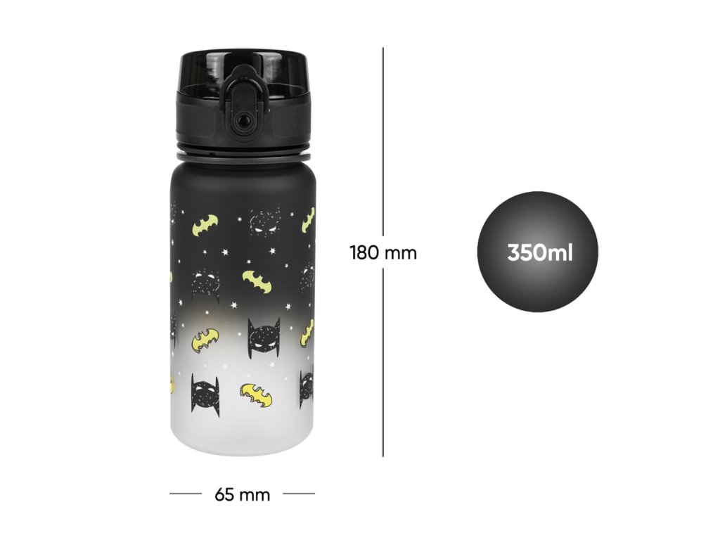 Tritán kulacs gyerekeknek Gradient Batman Mask 350 ml A megfelelő kulacs nem hiányozhat az iskolai felszerelésből. A BAAGL kulacs iskolába, kirándulásra vagy sportkörre is alkalmas. A zárható fedél egyetlen csepp italt sem enged át, és egyszerű, intuitív kezelést biztosít. A kulacshoz tartozik egy szűrő, melynek köszönhetően a kulacs gyümölcsös limonádéhoz vagy teához is használható (az anyag forró italokhoz is alkalmas). A palackhoz egy hurok van rögzítve, amely lehetővé teszi a kényelmes kézben hordozást.A tanúsított tritán anyag garantálja az ital maximális biztonságát és minőségét. Nem bocsát ki kellemetlen műanyag szagot, mint más műanyagok, és nem tartalmaz egészségre káros anyagokat (BPA, PVC, ftalátok stb.). Végül is a tritan termékeket az egészségügyben is használják. A palack használatával csökkenti az egyszer használatos PET palackokból származó műanyag hulladékot, és segít csökkenteni a megtermelt műanyag hulladék mennyiségét, amely eddig főként hulladéklerakókban, égetőkben vagy gyakran a természetben végzi.A kulacs űrtartalma 350 ml.
