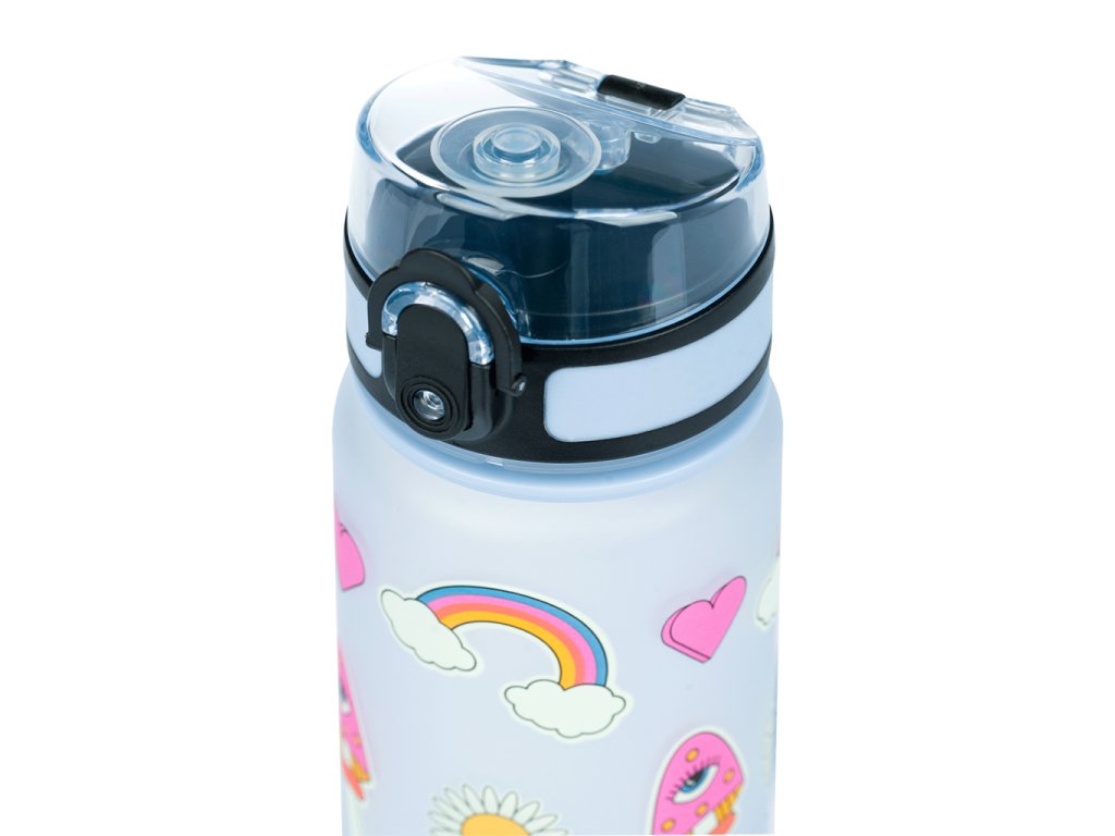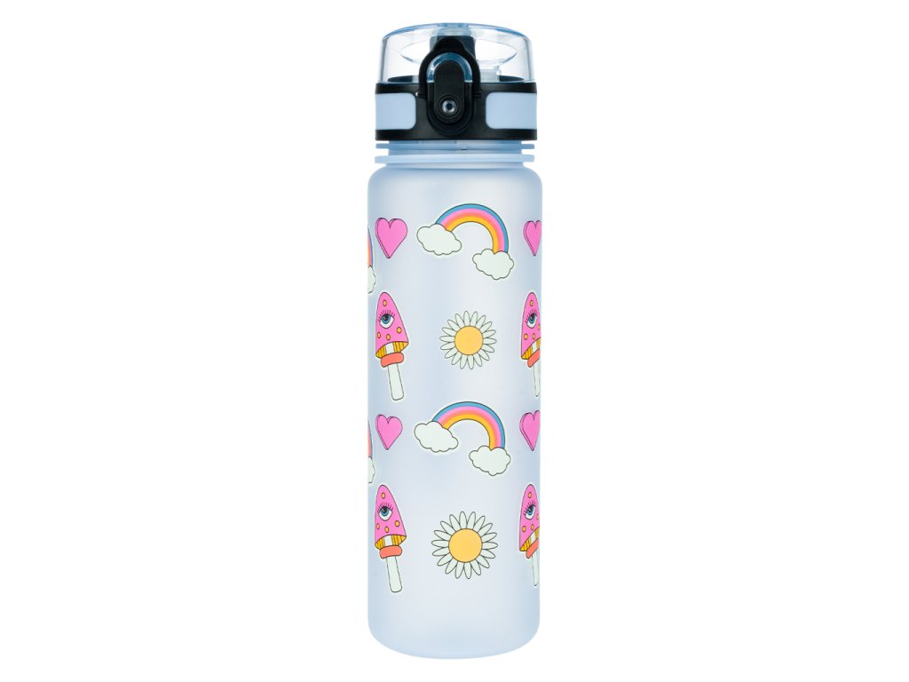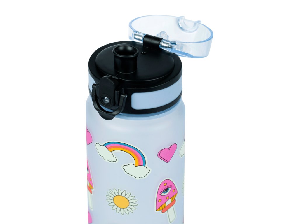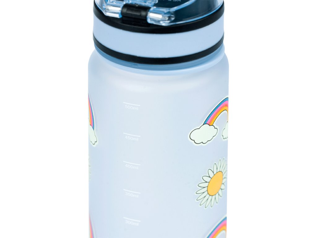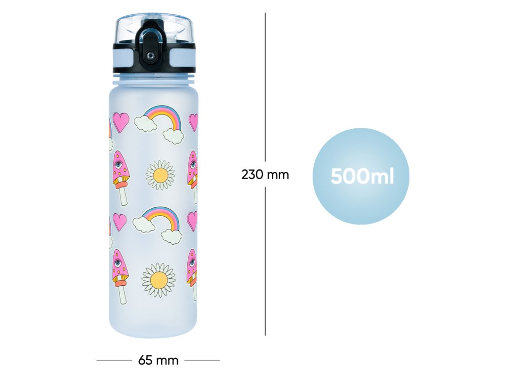 BAAGL Hippie 500 ml-es tritán kulacs gyerekeknek. Egy rendes kulacs nem hiányozhat az iskolai felszerelésből. A BAAGL kulacs iskolába, kirándulásra és sportkörre is alkalmas. A zárható fedél egyetlen csepp italt sem enged át, és egyszerű, intuitív kezelést biztosít. A kulacshoz tartozik egy szűrő, melynek köszönhetően a kulacs gyümölcsös limonádéhoz vagy teához is használható (az anyag forró italokhoz is alkalmas). A palackhoz egy hurok van rögzítve, amely lehetővé teszi a kényelmes kézben hordozást.A tanúsított tritán anyag garantálja az ital maximális biztonságát és minőségét. Nem bocsát ki kellemetlen műanyag szagot, mint más műanyagok, és nem tartalmaz egészségre káros anyagokat (BPA, PVC, ftalátok stb.). Végül is a tritan termékeket az egészségügyben is használják. A palack használatával csökkenti az egyszer használatos PET palackokból származó műanyag hulladékot, és segít csökkenteni a megtermelt műanyag hulladék mennyiségét, amely eddig főként hulladéklerakókban, égetőkben vagy gyakran a természetben végzi.A kulacs űrtartalma 500 ml.
