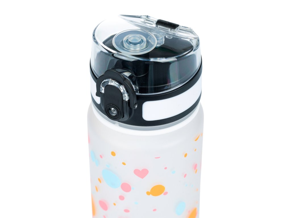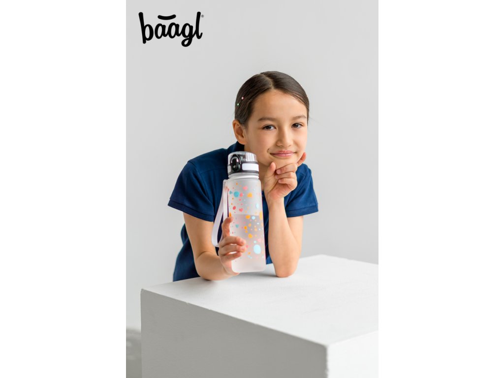 Tritán kulacs gyerekeknek, Miláčikovia mintával, 500 ml. Az iskolai felszerelésből nem hiányozhat egy rendes kulacs. A BAAGL kulacs iskolába, kirándulásokra vagy sportkörre is alkalmas. A zárható fedél egyetlen csepp italt sem enged át, és egyszerű, intuitív kezelést biztosít. A kulacshoz tartozik egy szűrő, melynek köszönhetően a kulacs gyümölcsös limonádéhoz vagy teához is használható (az anyag forró italokhoz is alkalmas). A palackhoz egy hurok van rögzítve, amely lehetővé teszi a kényelmes kézben hordozást.A tanúsított tritán anyag garantálja az ital maximális biztonságát és minőségét. Nem bocsát ki kellemetlen műanyag szagot, mint más műanyagok, és nem tartalmaz egészségre káros anyagokat (BPA, PVC, ftalátok stb.). Végül is a tritan termékeket az egészségügyben is használják. A palack használatával csökkenti az egyszer használatos PET palackokból származó műanyag hulladékot, és segít csökkenteni a megtermelt műanyag hulladék mennyiségét, amely eddig főként hulladéklerakókban, égetőkben vagy gyakran a természetben végzi.A kulacs űrtartalma 500 ml.