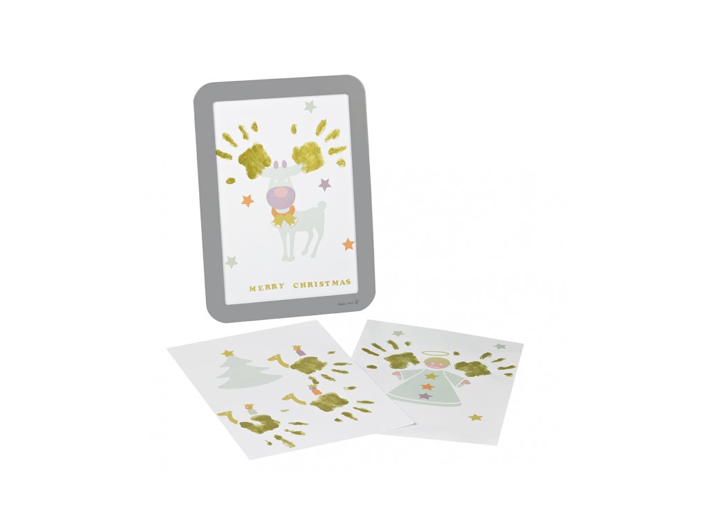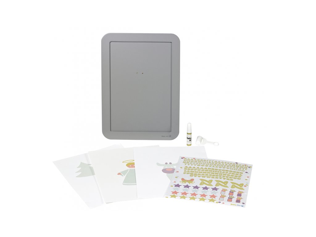 A csomag tartalmaz egy keretet, képeket a befejezéshez a baba kézlenyomatainak segítségével, egy matricakészletet karácsonyi motívumokkal és mindent, ami a lenyomat elkészítéséhez szükséges. A mellékelt útmutató szerinti használat egyszerű, gyors és tiszta.