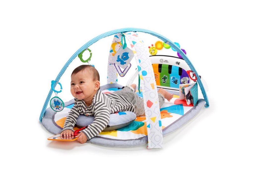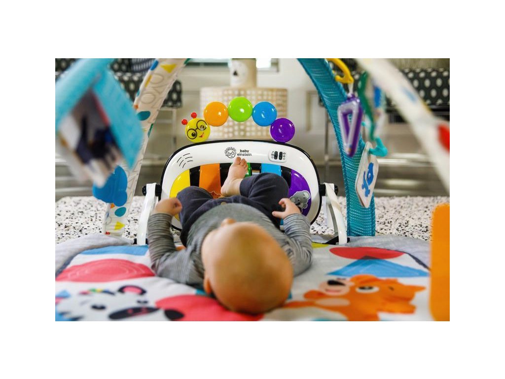 7 levehető játékot tartalmaz, köztük egy Magic Touch zongorát és egy párnát. Ennek a szőnyegnek és a Baby Einstien márka többi termékének köszönhetően a babájából egy kis Einstein válik, aki nem fog elveszni a világban.