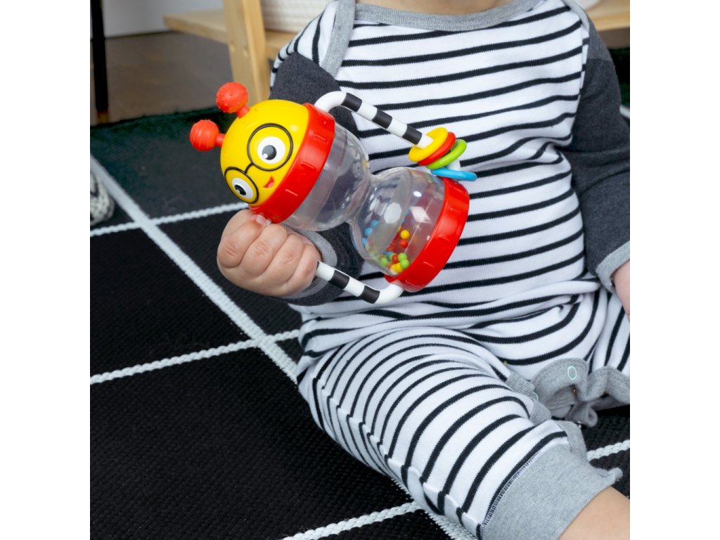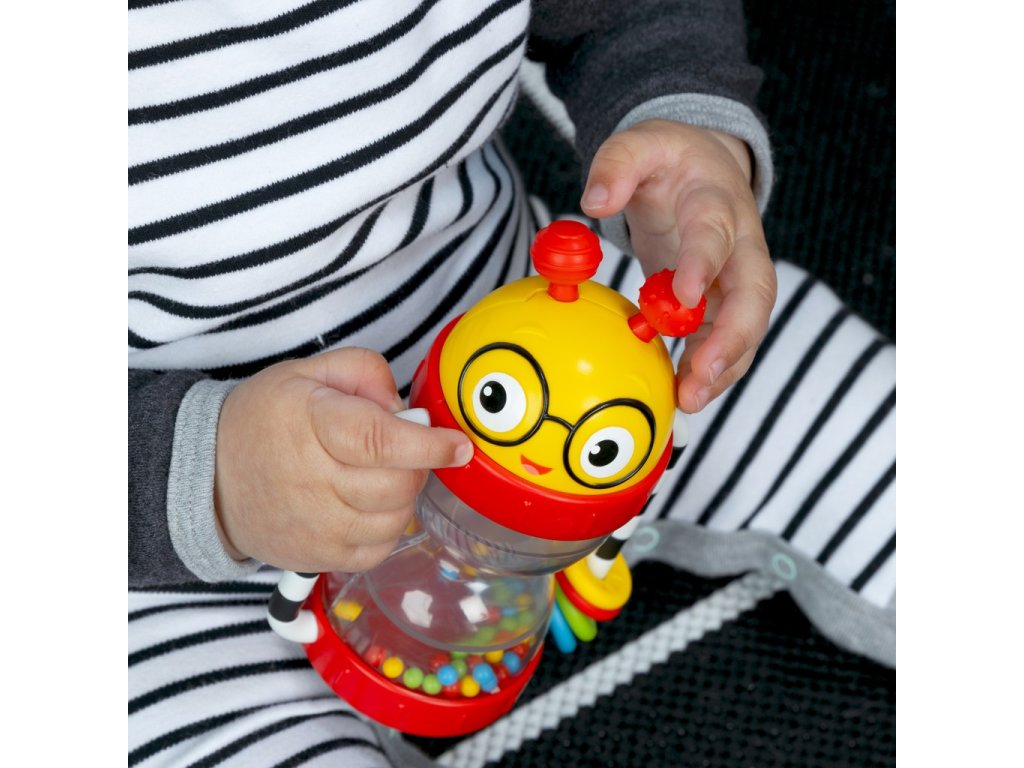 Az 5 érzékszervi funkciónak köszönhetően a baba új textúrákat fedezhet fel, fejlesztheti finommotoros készségeit, és ösztönözheti az okok és okozatok tanulását ezzel a BPA-mentes játékkal. A baba örömmel fogja felfedezni Cal csápjainak textúráját, vagy zajt kelteni a homokóra gyöngyeinek rázásával, hogy csörgő hangokat hozzon létre. Az okok és okozatok felfedezéséhez a babák elforgathatják Cal fejét, és kattogó hangokat adhatnak ki, vagy használhatják a játék talpán lévő biztonságos tükröt az önfelismerés és az öröm elősegítésére. A 4 csörgő karika támogatja a finommotoros készségeket, vagy segít a szülőknek megtanítani a kisgyermekeket a színek felismerésére.