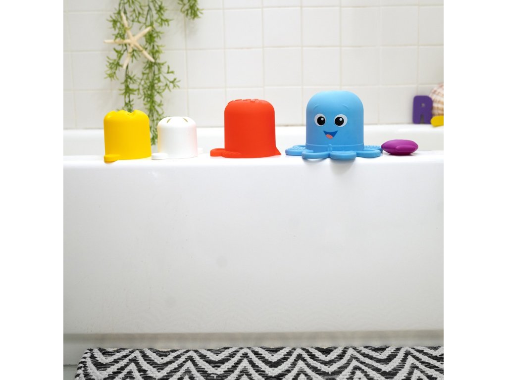 A 4 óceán témájú pohár mindegyike nagy és strukturált, hogy a gyermek könnyen megfogja és játszhasson vele. Gyönyörködjön a Baby Einstein Ocean Explorers Opus polip megfigyelésében, amely meleg vízben színt vált!