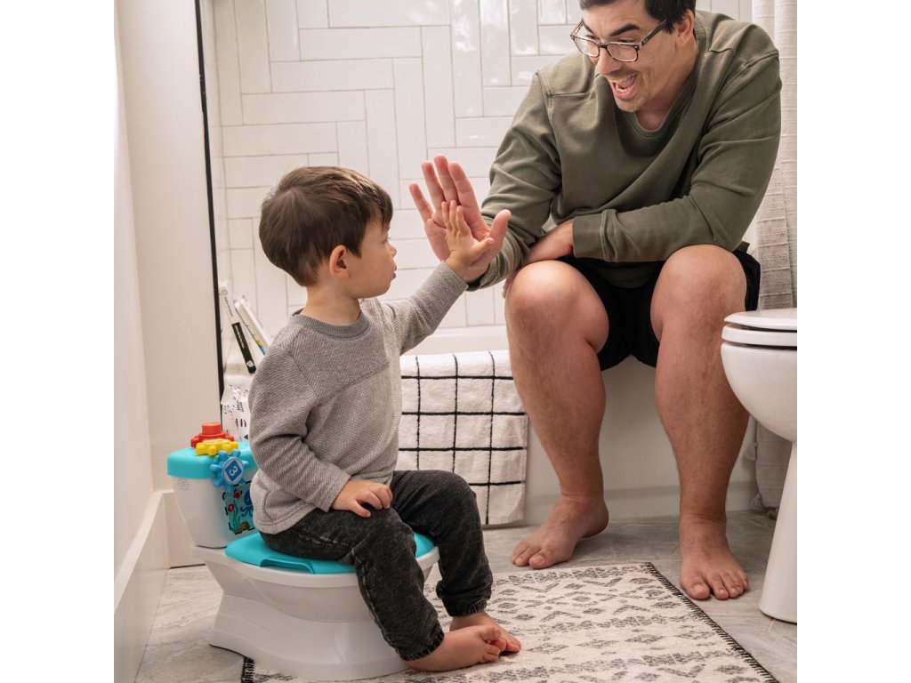 - A bili a használatkor megjelenő figurával jutalmazza a gyermeket, amikor pisil, megtanítja az ok-okozati összefüggést, és ösztönzi a WC használatával kapcsolatos kíváncsiságot.
