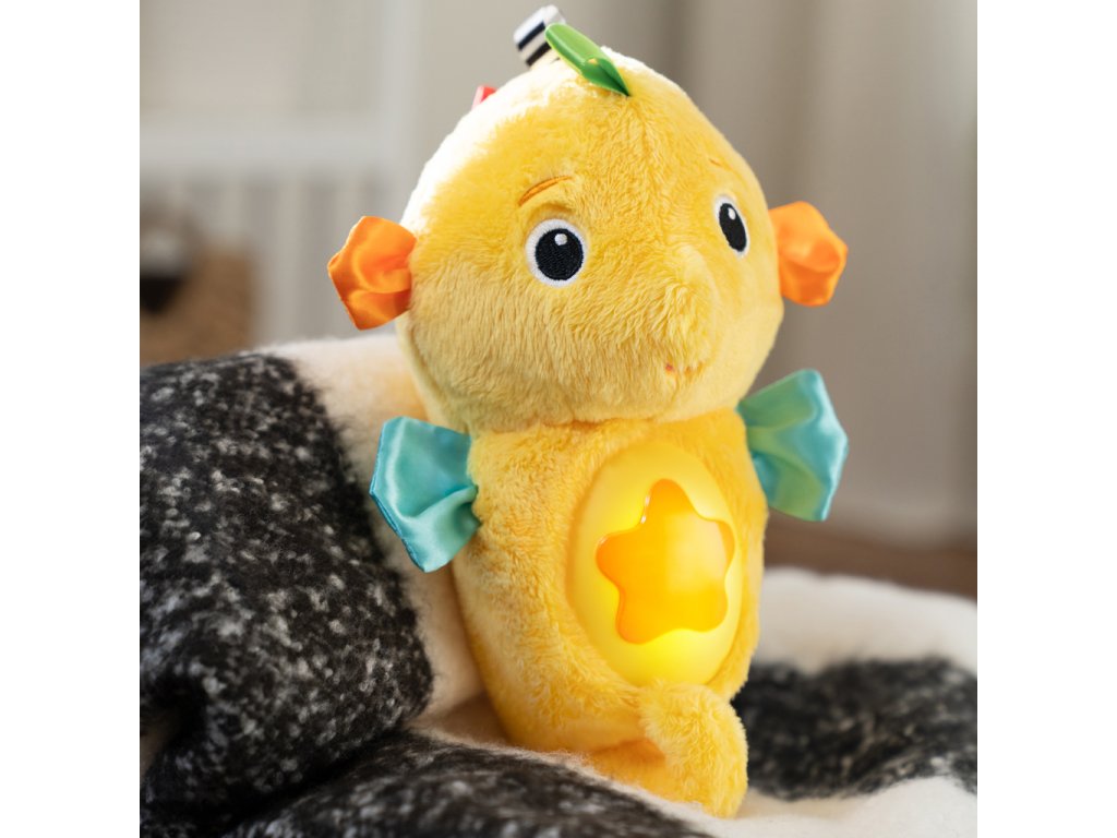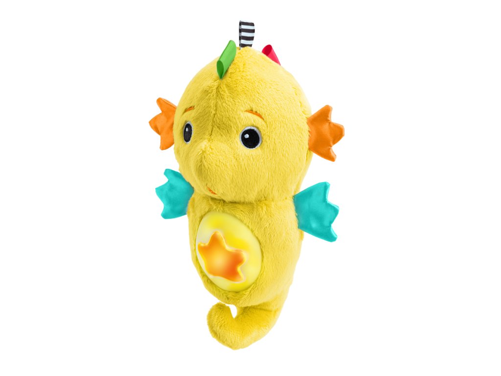 A sírásra reagáló technológiának köszönhetően a tengeri csikó reagál a baba sírására – automatikusan elindít akár 7 percnyi dallamot vagy óceáni hangot. A baba megtanulhatja, hogyan nyugtassa meg magát – csak finoman nyomja meg a csikó hasán lévő csillagot, és az finom színekkel (akár 5 árnyalattal) ragyog, vagy akár 15 percnyi klasszikus zenét vagy természeti hangot játszik le. A hasán egy cumitartó is található, hogy a kicsinek mindig kéznél legyen a kedvenc cumija. Ráadásul a csikónak színes szalagjai vannak, amelyek serkentik a baba tapintását és látását. Ideális ajándék gyermekeknek születésüktől fogva. Tökéletes ajándékötlet babaszületésre.
