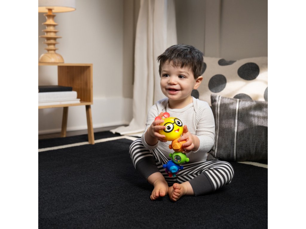 - A Baby Einstein Twist-a-Pal Cal szenzoros játék fejleszti a finommotorikát és az ok-okozati összefüggések elvét, miközben a gyermek elforgatja az egyes szegmenseket, és felfedezi a zenét, a fényeket és a különböző textúrákat.