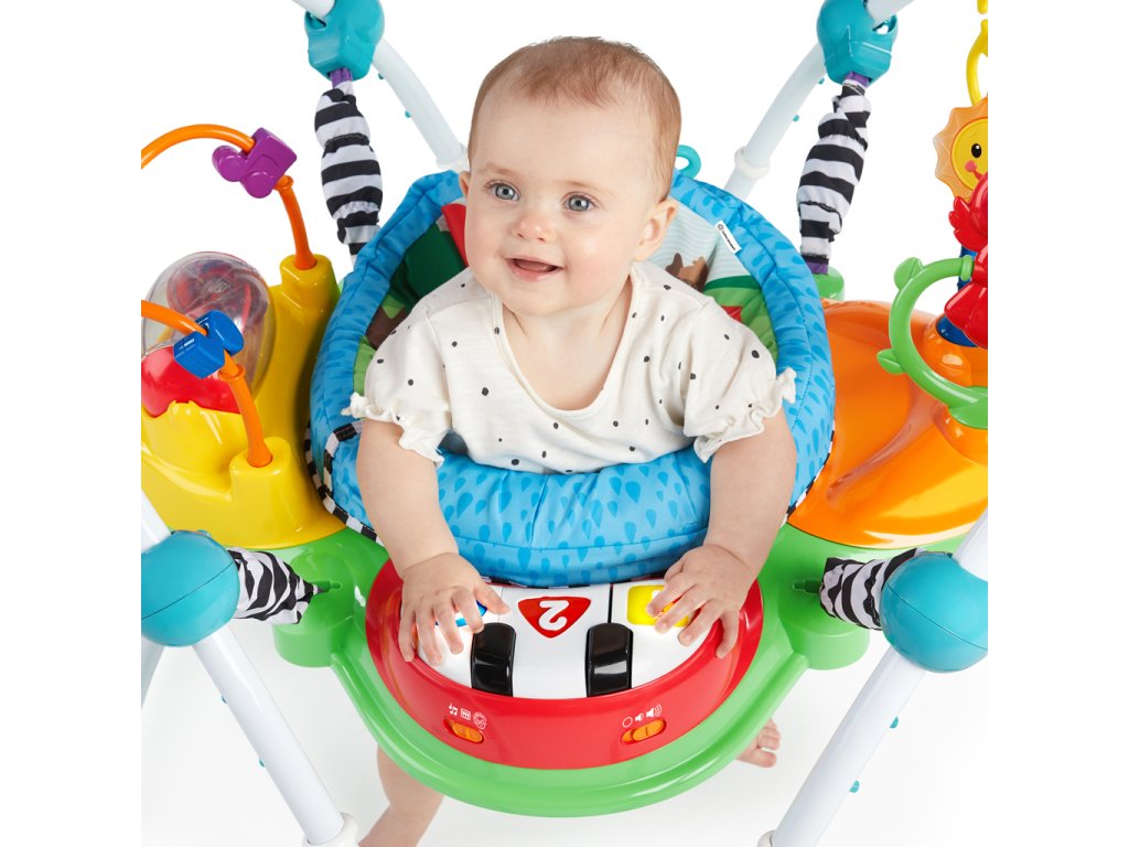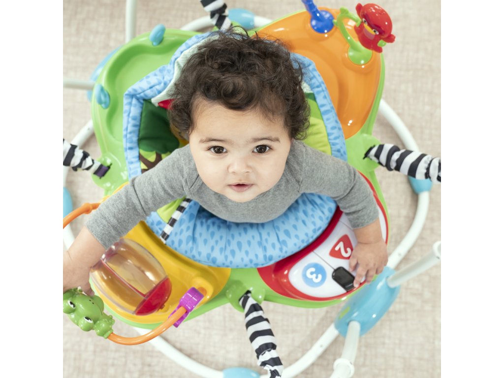 Szórakozás, mozgás és tanulás egyben! Az interaktív ugrálóval minden játék izgalmas kalanddá válik. Ez a díjnyertes tevékenységközpont több mint 12 különböző ingert kínál az érzékek, a motoros készségek és a beszéd fejlesztéséhez – mindezt egy 360 fokos kilátást nyújtó, forgatható ülés biztonságában. A gyermek ugrálhat, foroghat, felfedezhet és alkothat – például játszhat a világító zongorán, megfoghatja a gyöngyöket a békán, vagy új hangokat fedezhet fel. Az ugráló támogatja a lábak fejlődését, a szem-kéz koordinációt és a kíváncsiságot. A nyelvi elemek angol, spanyol és francia szavakat mutatnak be, ami támogatja a korai nyelvi fejlődést. Ajándékozzon gyermekének egy zenével, felfedezéssel és mozgással teli világot – mindezt egy helyen.