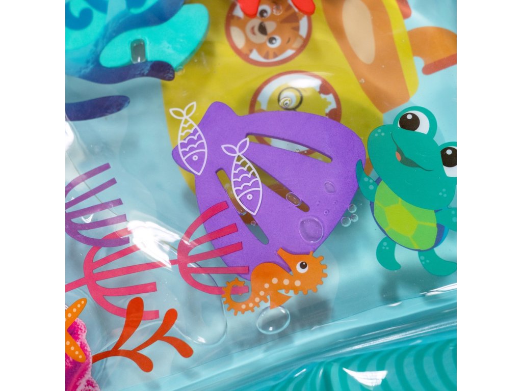 Ez a puha, feltölthető alátét 3 úszó tengeri élőlényt tartalmaz, és támogatja a baba felfedezését a hasi idő alatt. A baba élvezni fogja, hogy az egyes tengeri élőlények a vízben mozognak koppintással vagy nyomással, miközben támogatja az érzékszervi felfedezést, az ok-okozati összefüggések tanulását és a finommotorikát.