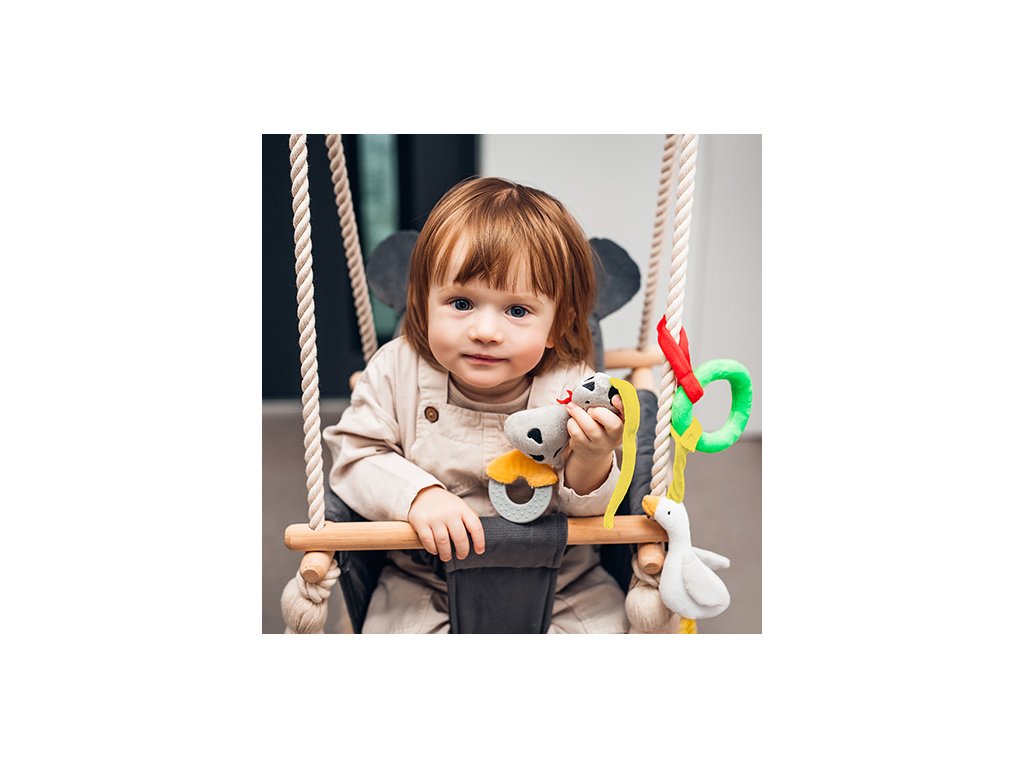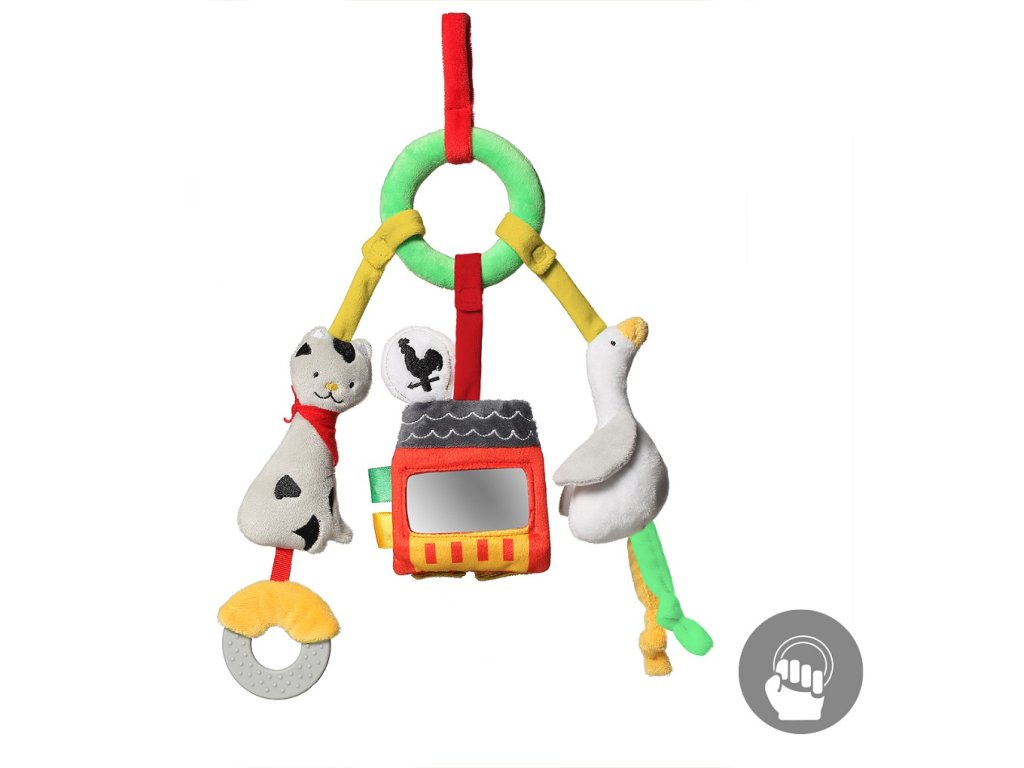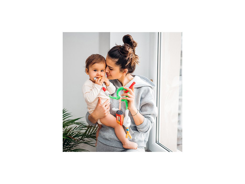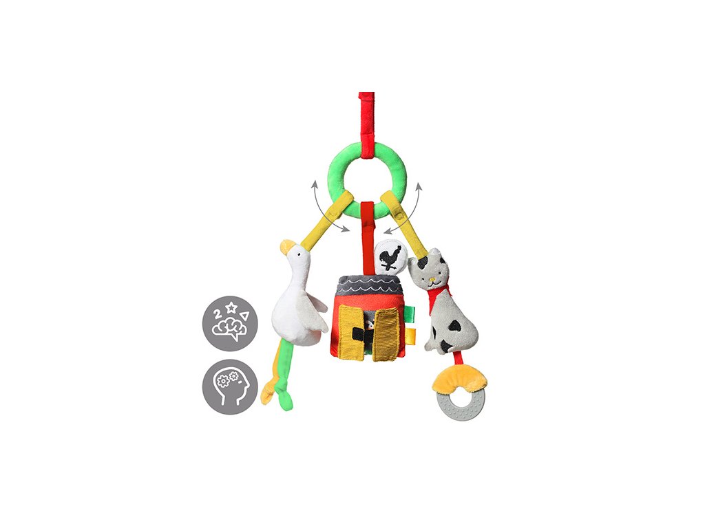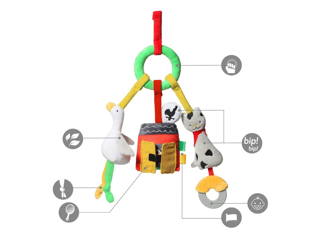 Ez a fejlesztő játék bevezeti gyermekét a színek, hangok és formák sokszínű világába. A játék formája, amely egy játszórúdra emlékeztet, lehetővé teszi, hogy minden típusú autósülésre vagy babakocsira felakasszák. Ennek köszönhetően a játék elkísérheti gyermekét utazásai és sétái során.
