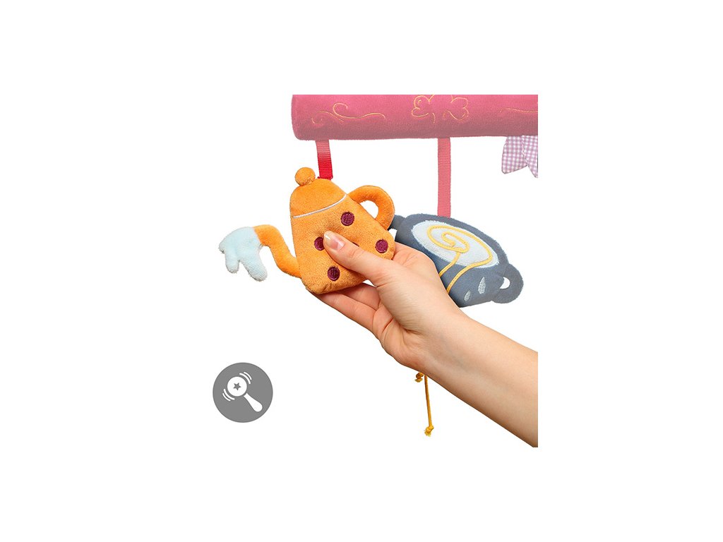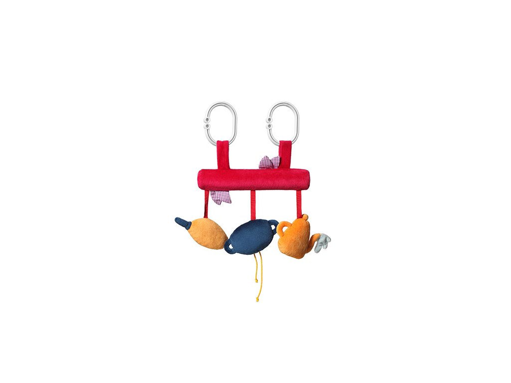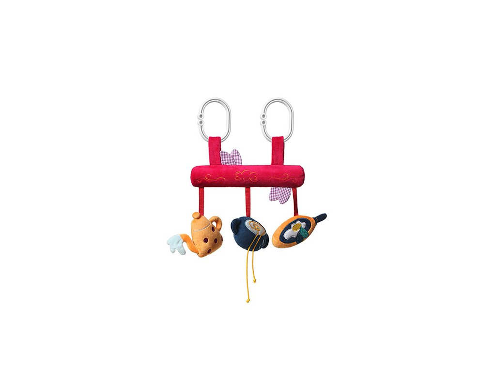 Ez a fejlesztő játék bevezeti gyermekét a színek, hangok és formák sokszínű világába. A játék formája, amely egy játszórúdra emlékeztet, lehetővé teszi, hogy minden típusú autósülésre vagy babakocsira felakasszák. Ennek köszönhetően a játék elkísérheti gyermekét utazásai és sétái során.