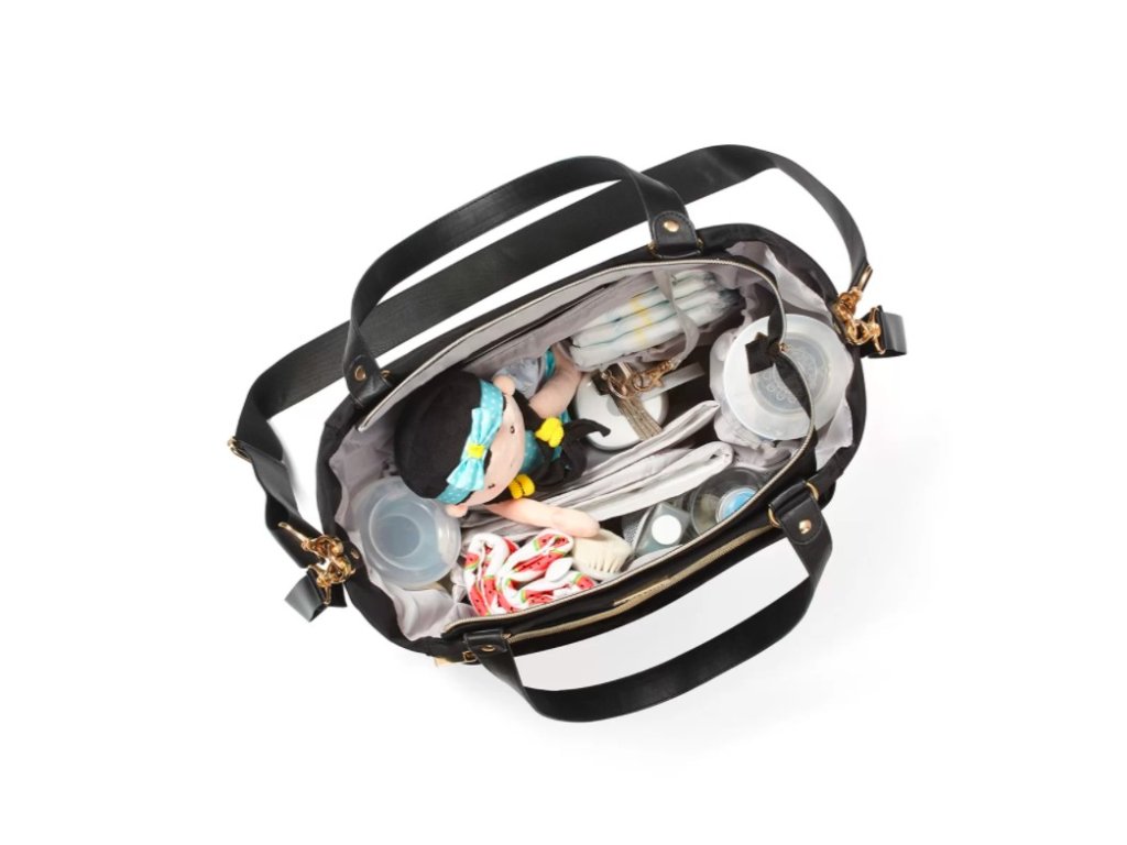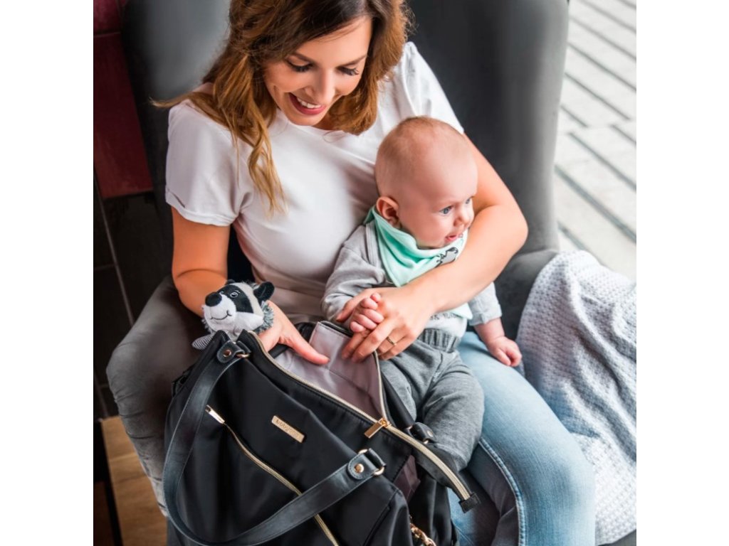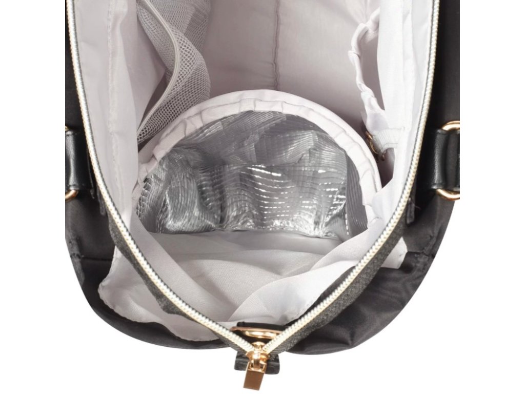 A táska zsinórral van ellátva, amely lehetővé teszi a kulcsok egyszerű megtalálását. Található benne egy cipzáras zseb is gyors hozzáféréssel, amelyben elfér a telefon. A külső oldalzsebek a bébiételek és italok praktikus tárolására szolgálnak. A táska belsejében található zseb hőszigetelő funkciója lehetővé teszi az étel kívánt hőmérsékletének megőrzését.