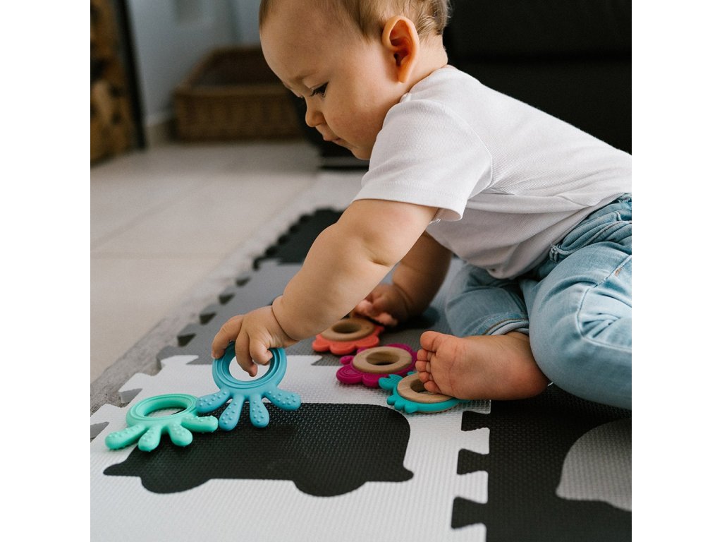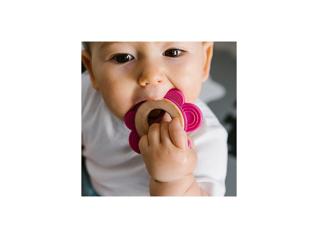A fa és szilikon rágóka nemcsak alapvető feladatát látja el, azaz enyhíti a fogzási fájdalmat, hanem a biztonságos szilikon és a bükkfa kombinációjának köszönhetően változatos érzékszervi stimulációt is biztosít a baba számára.
