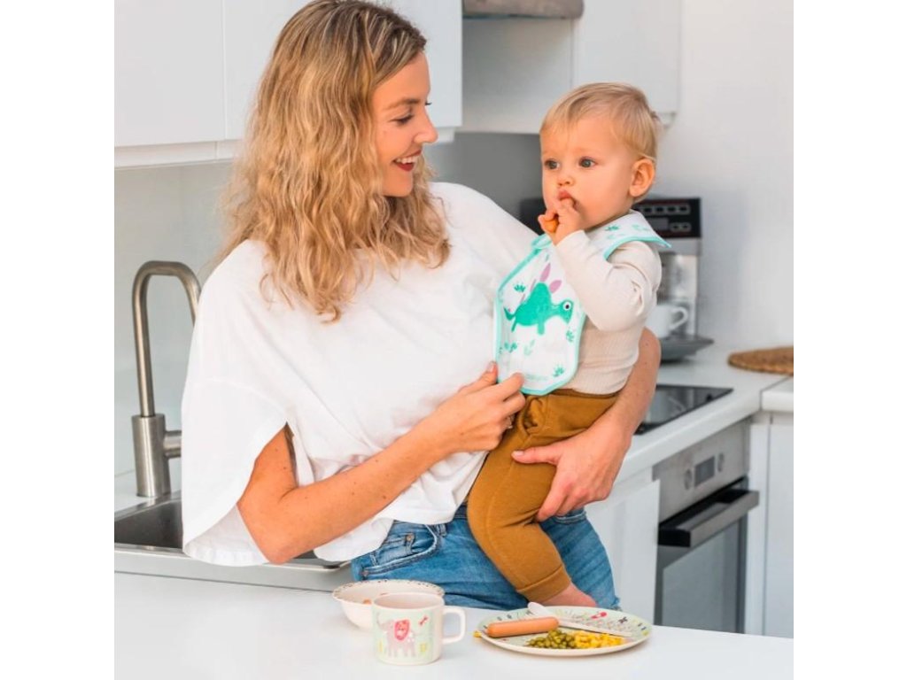 A gyönyörű mintával ellátott előke kiváló minőségű frottír pamutból készült. A belső réteg vízálló anyagból készült, amely ráadásul védi a baba ruháját a szennyeződésektől. A kényelmes és praktikus tépőzáras rögzítés növeli a baba komfortérzetét.