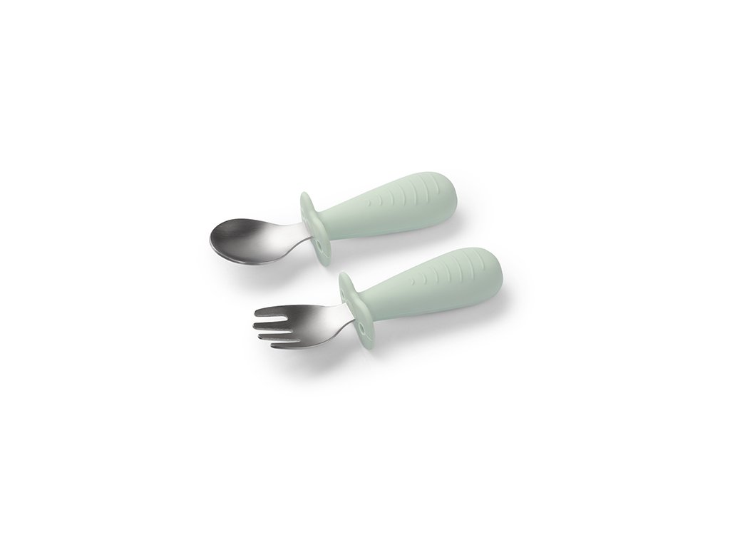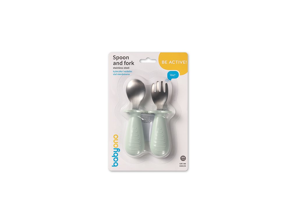 BABYONO Gyermek evőeszköz szettel, menta színű, 12m+