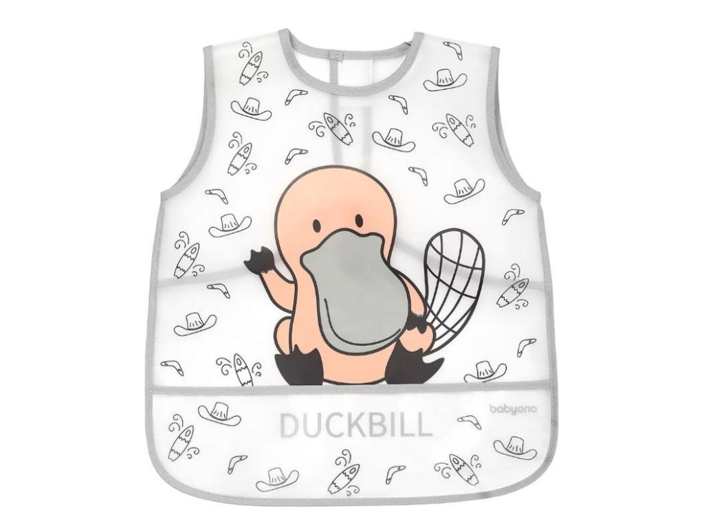 BABYONO Mosható szürke előke 12m+, 30x35 cm