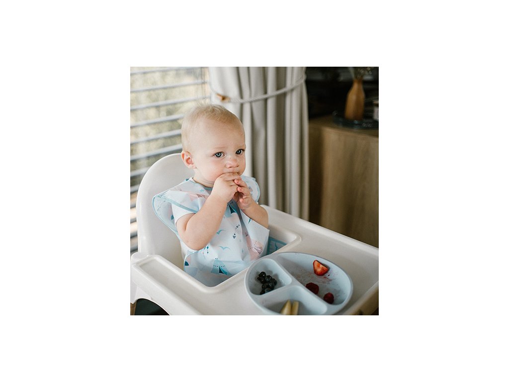 Morzsatartó zseb – a praktikus megoldások mindig a legjobbak. A nyálkendő elején található zseb felfogja az ételmaradékot.
