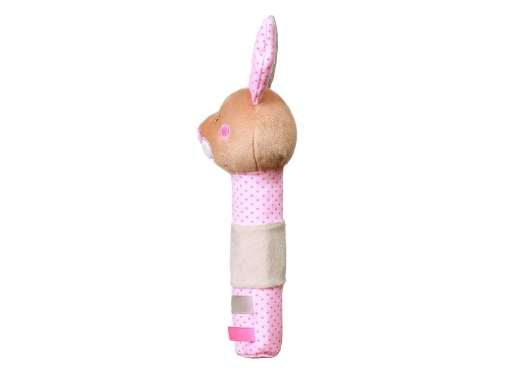 Julia nyuszi egy igazi kis hölgy, aki odafigyel a ruhái minden részletére, és imádja a rózsaszín összes árnyalatát. Julia minden kis hercegnőt el fog varázsolni. A játék formája egyszerű a kis kezek számára, a sípolás pedig mosolyt csal a baba arcára. A különböző textúrák támogatják a baba kognitív képességeinek fejlődését. Julia nyuszi a legjobb első társ minden kis hercegnő számára.