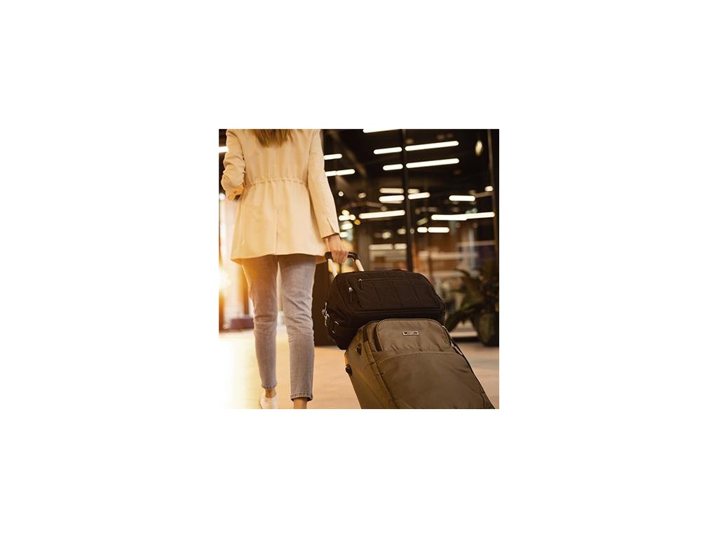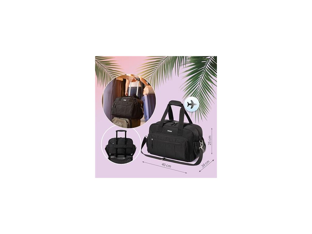 Ideális utazáshoz – A 40 cm x 20 cm x 25 cm méretű táska ideális kézipoggyász lesz a repülőgépen. A speciális fogantyúnak köszönhetően a táska a bőröndre akasztható.