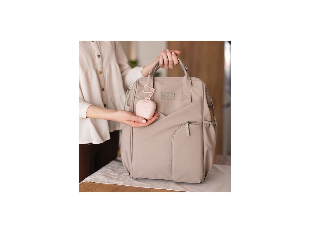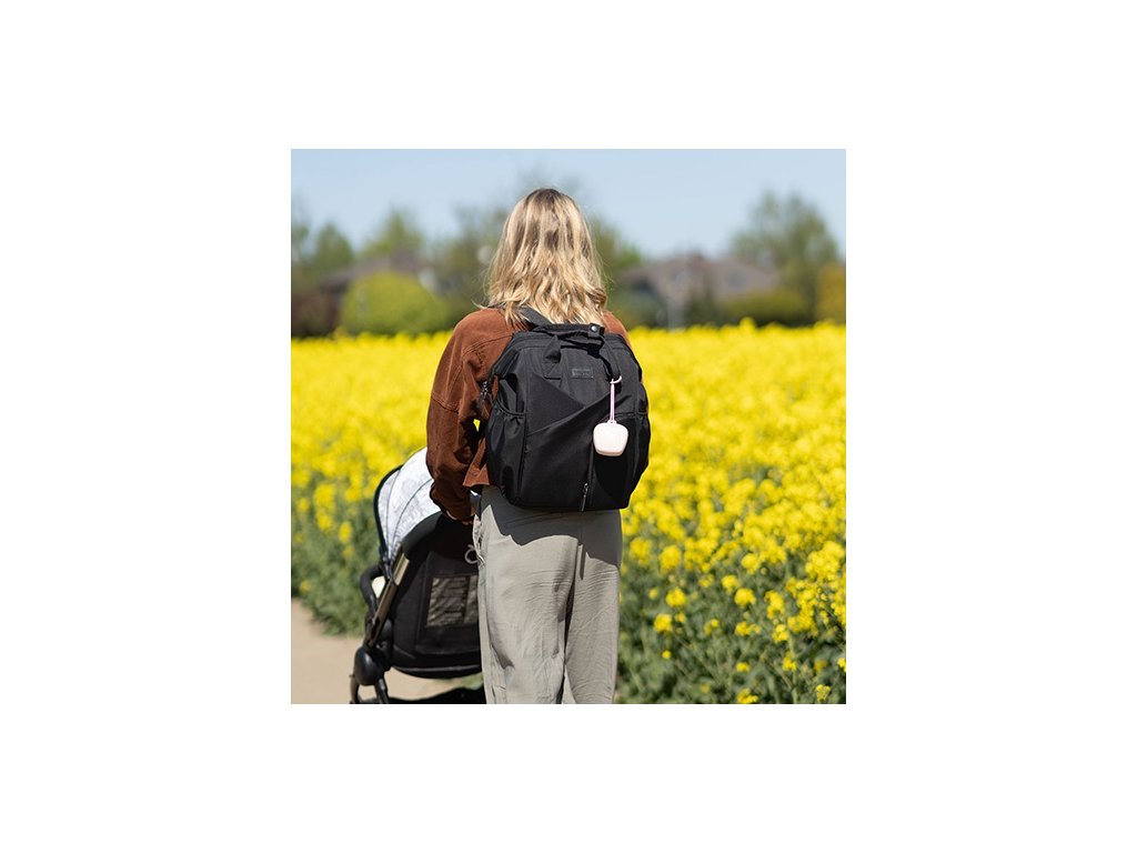 - a pánt lehetővé teszi a tok rögzítését táskára, babakocsira vagy kiságyra – a cumi mindig kéznél lesz