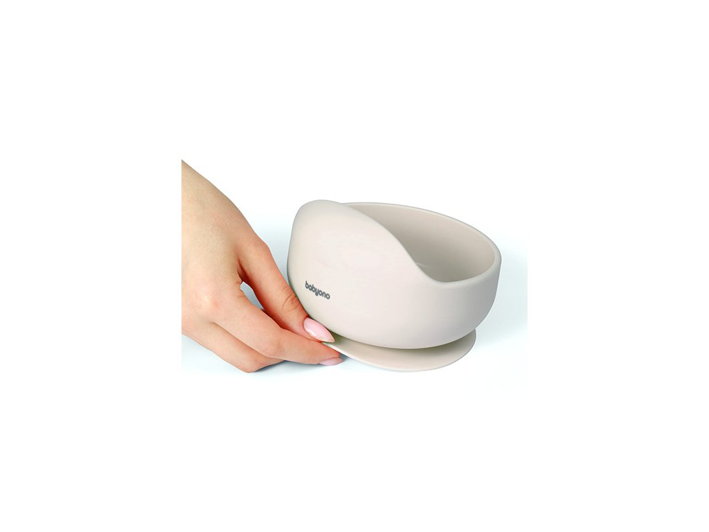 BABYONO Szilikon tál tapadókoronggal - bézs 6m+