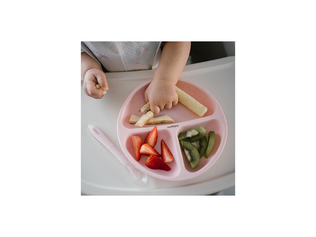 A szilikon tányér ideális segítőtárs a gyermek önálló étkezésre való áttérésében.