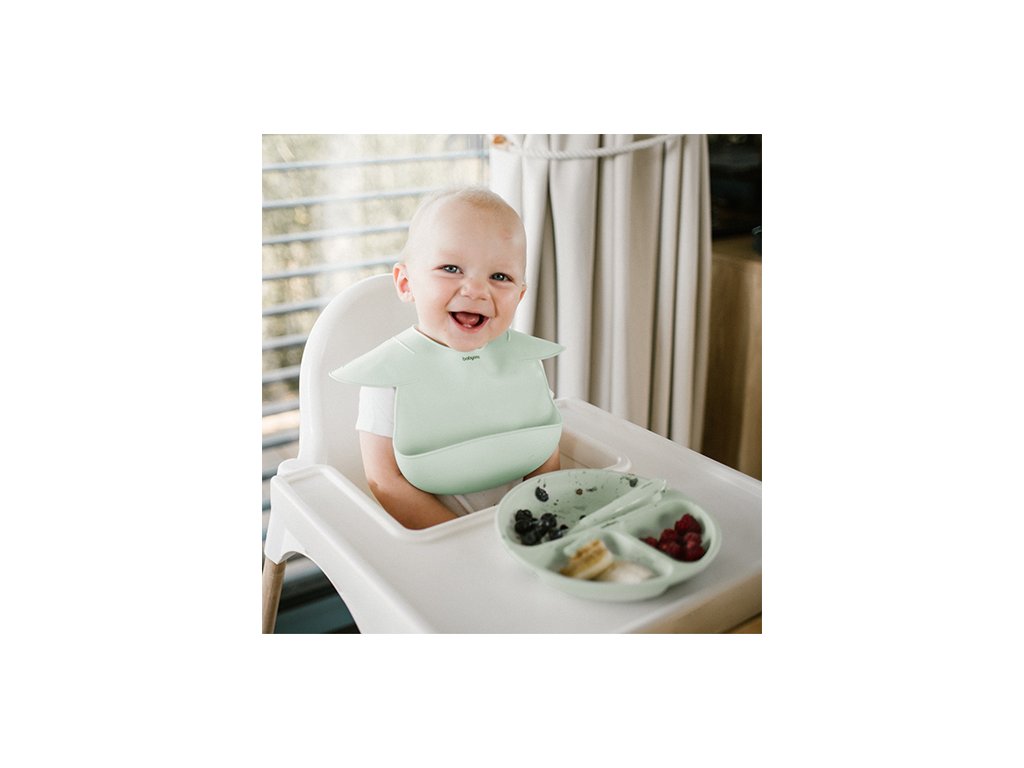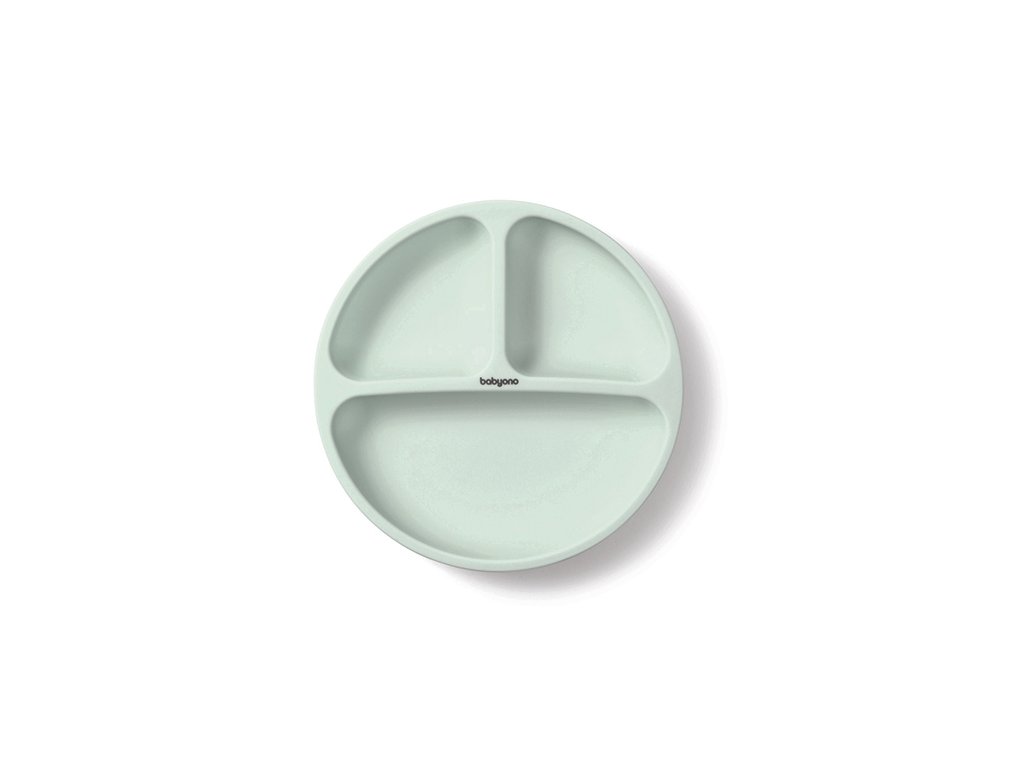 BABYONO Szilikon tányér tapadókoronggal - sage 6m+