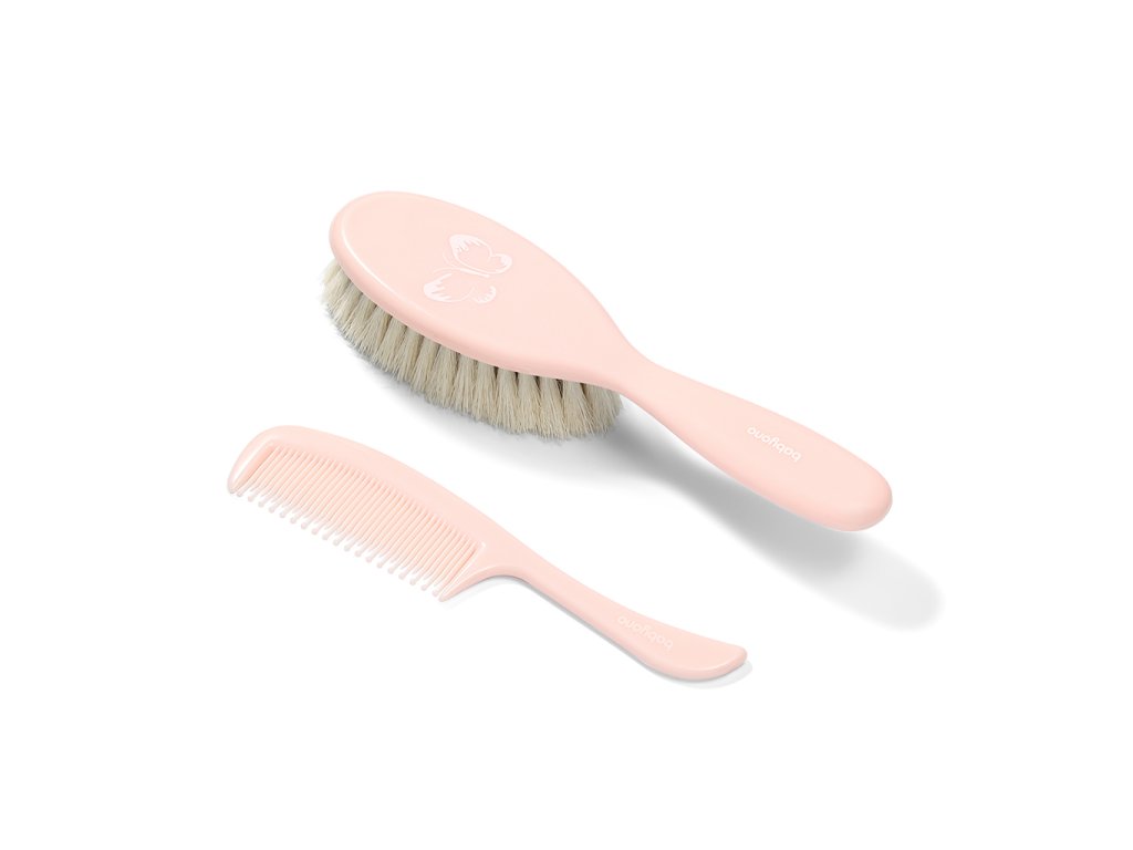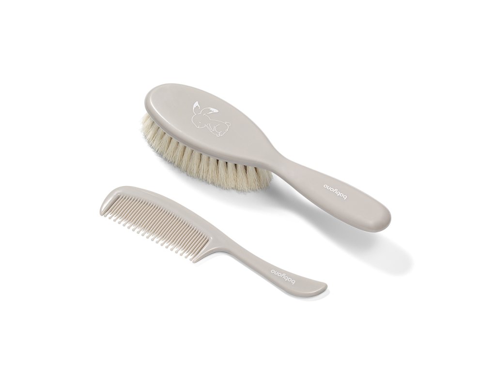 Hajkefe és fésű. A puha, természetes sörtéjű kefe a csecsemő fejbőrének masszírozására és az első hajszálak ápolására szolgál.