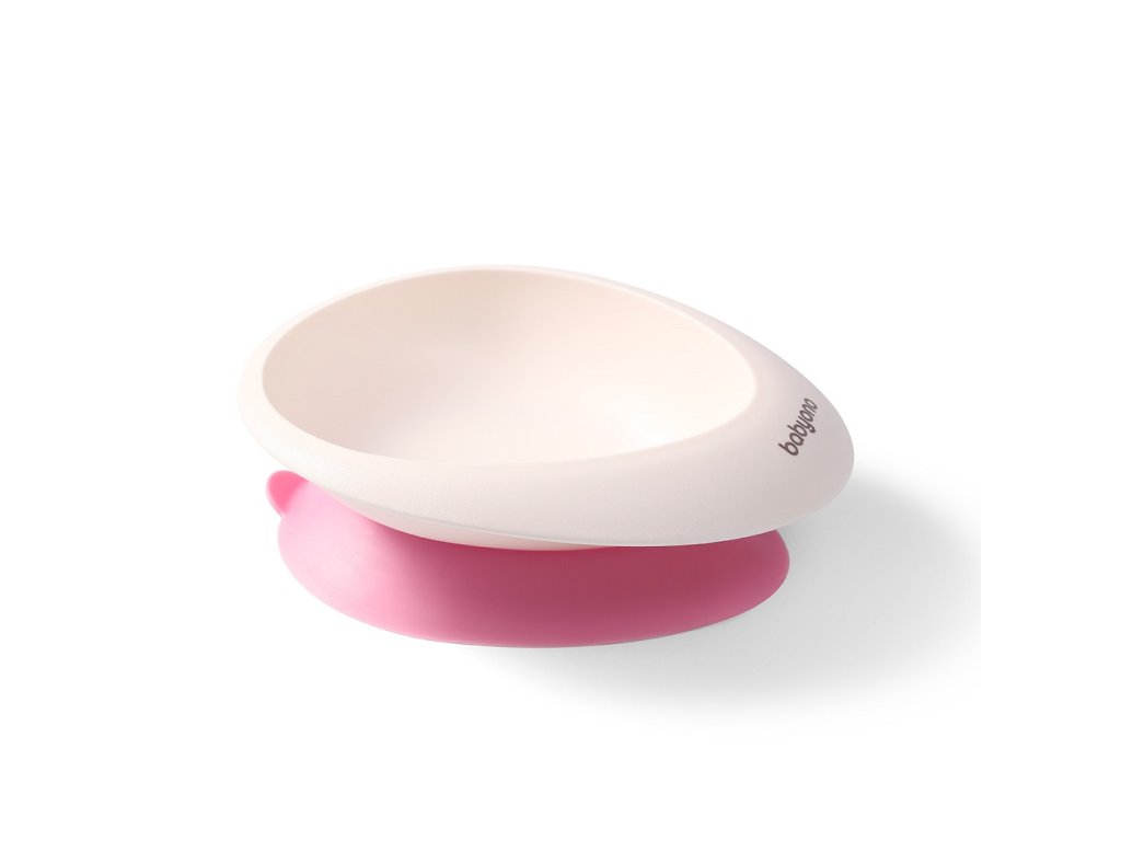 BABYONO Tányér tapadókoronggal és kanállal rózsaszín 230 ml 6h+