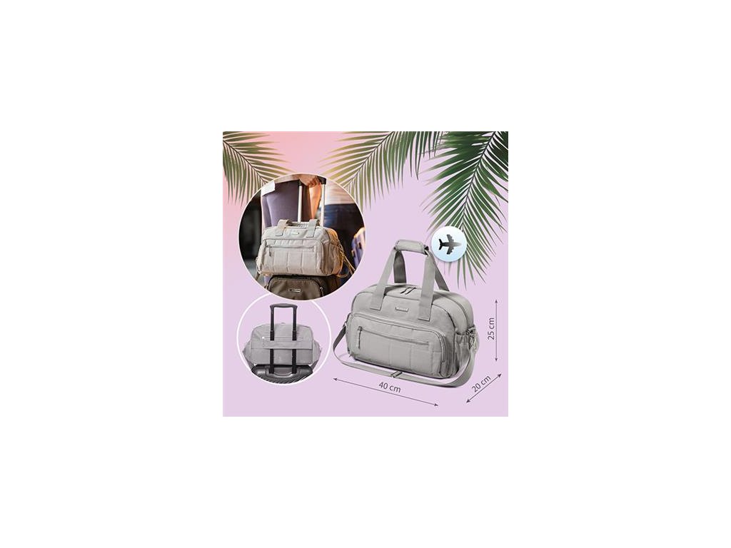 Ideális utazáshoz – A 40 cm x 20 cm x 25 cm méretű táska ideális kézipoggyász lesz a repülőgépen. A speciális fogantyúnak köszönhetően a táska a bőröndre akasztható.