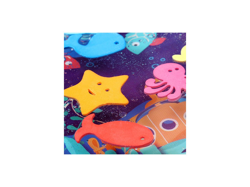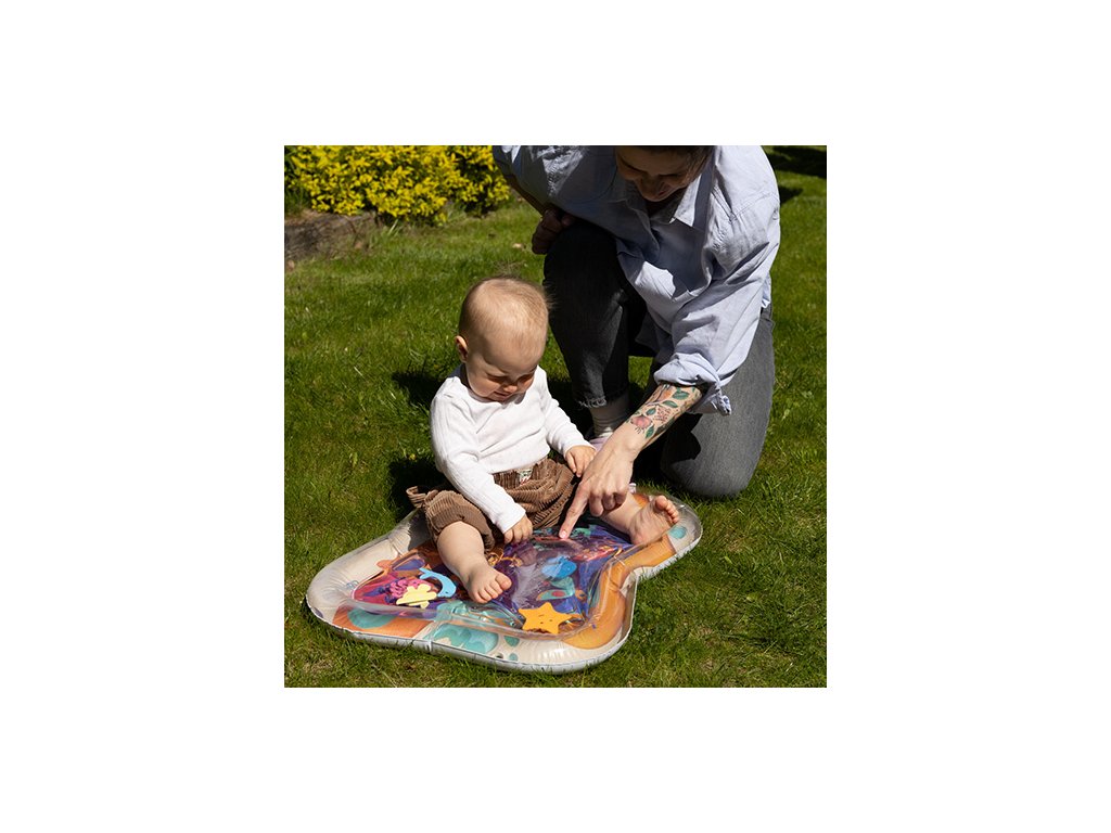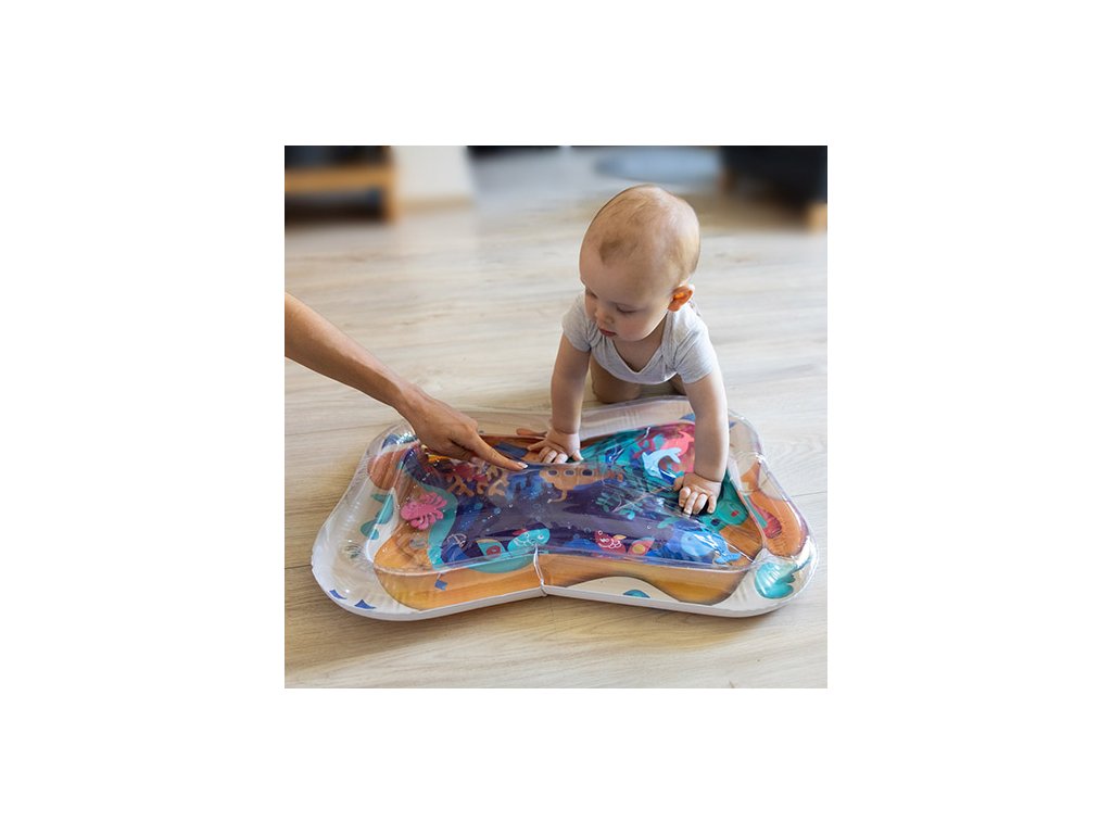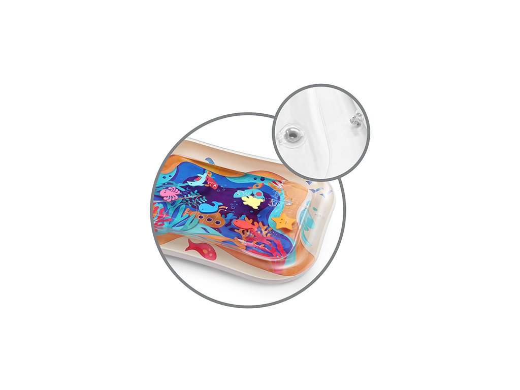 Az interaktív elemeknek köszönhetően a vizes babaszőnyeg fejleszti a látást és a térbeli funkciókat, valamint a kreativitást. A felfújható vizes alátét hajóként, szigetként vagy strandként is szolgálhat – az egyetlen korlát a baba és a szülő fantáziája.