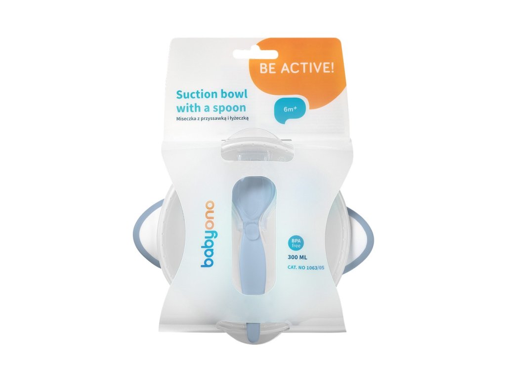 BABYONO Zárható tál tapadókoronggal és kanállal 300 ml 6h+