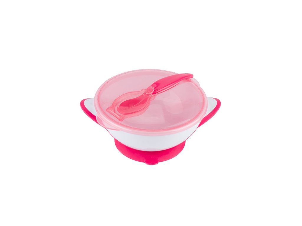 BABYONO Zárható tál tapadókoronggal és kanállal 300 ml rózsaszín 6m+