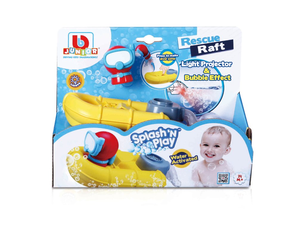 A BBJunior mentőcsónak a Splash'N Play sorozatból, fényvetítővel és buborékhatással. Egyszerűen helyezze a csónakot a fürdőkád vagy medence vizébe, és a motor aktiválja a buborék- és fényeffektusokat. Támogatja a kéz/szem koordináció fejlődését. A gyermekeknek megtanítja a szerepjátékot és az ok-okozati összefüggéseket. Nyomja meg a kart, hogy a búvárfigurát a fedélzeten keresztül küldje, hogy megkezdje mentőakcióját. A játék 24 hónapos kortól alkalmas gyermekek számára. A csónak meghajtásához három AAA elem szükséges, amelyek nem tartoznak a csomagoláshoz. A csónak mérete 5,9 hüvelyk (14,98 cm) Csomag mérete: 17,78 x 24,13 x 12,07 cm.