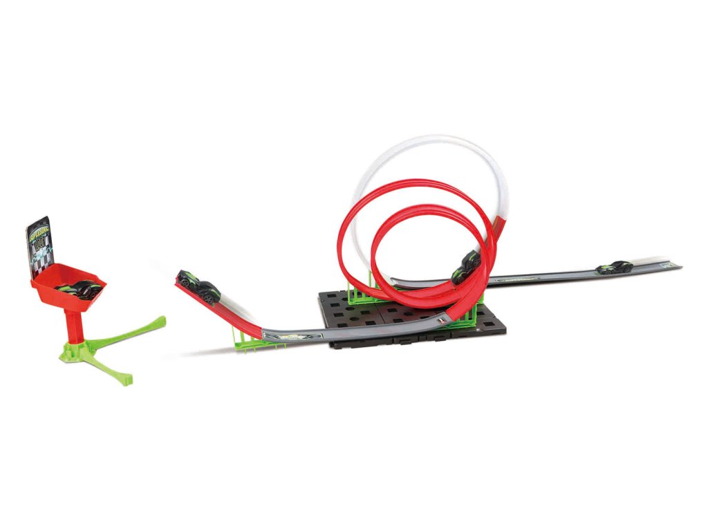 A hurokkészlet versenypálya, a GoGears Extreme kollekció SuperSonic Launch 3 v1-es hurok szettje végtelen órányi szórakozást kínál a gyerekeknek. A hurok szett – SuperSonic Launch több extrém hurkot tartalmaz. Haladj át több hurkon, és próbáld meg a hídról eltalálni a célt. A pálya átkonfigurálható. Három pálya elrendezési lehetőség. A készlet tartalmaz egy versenyautót, amely húzd és indul el elven működik. Az autó hatótávolsága akár 25 méter, sebessége pedig meghaladja a 840 km/h-t. A pálya tartós műanyagból készült. Dobozba csomagolva. 3 éves kor alatti gyermekek számára nem alkalmas. Az összeállított pálya méretei: 22 x 79 x 122 cm. A csomag méretei: 28 x 50,5 x 5,5 cm. Életkor: 3+