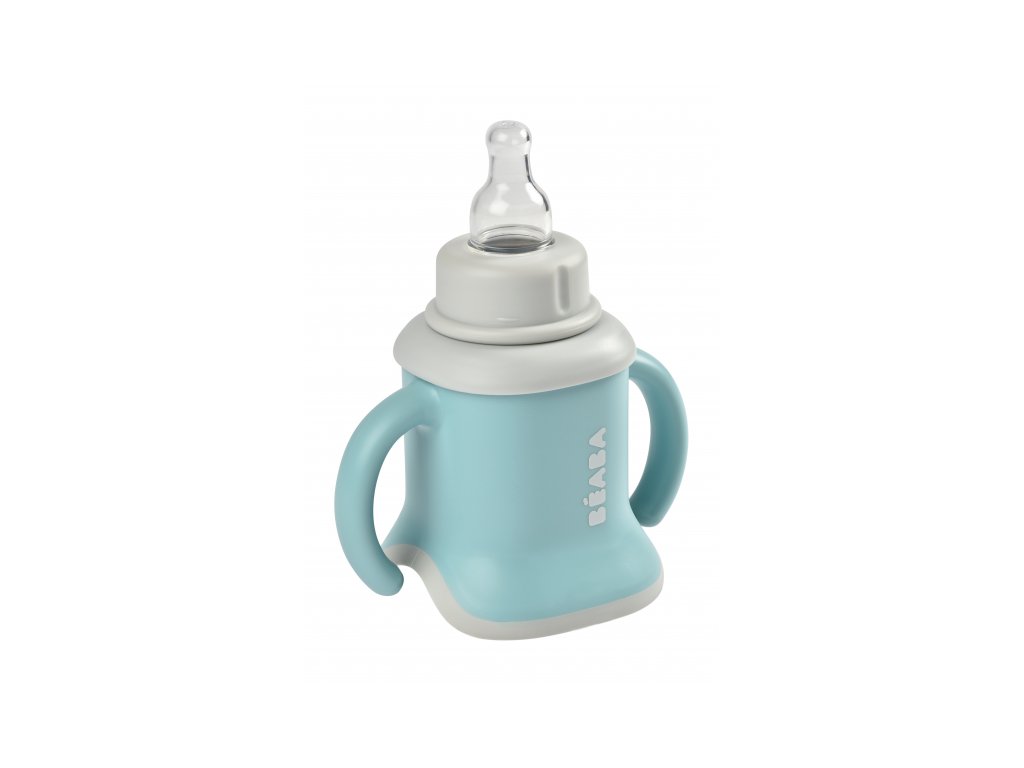 A tréningpohár segít a cumisüvegből iváshoz szokott gyermekének megtanulni a csőrös pohárból, majd a hagyományos pohárból való ivást. A pohár mindhárom változatot kínálja - cumit, csőrös itatót és hagyományos pohárként való használatot. A levehető fogantyúk megkönnyítik a gyermek számára a tartást. A felpattintható csőrös itató megakadályozza a tartalom kifolyását a pohár hordozásakor.