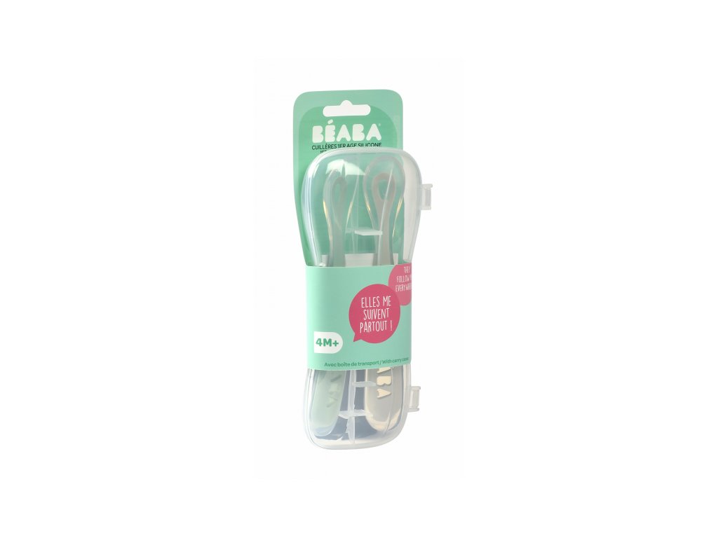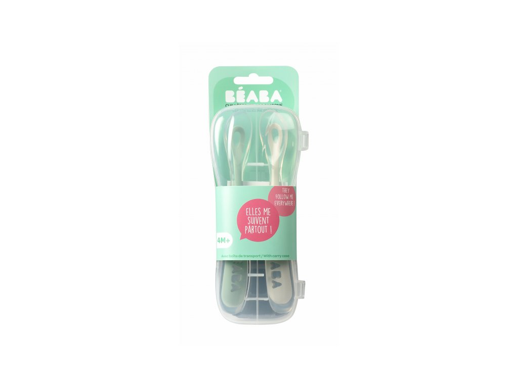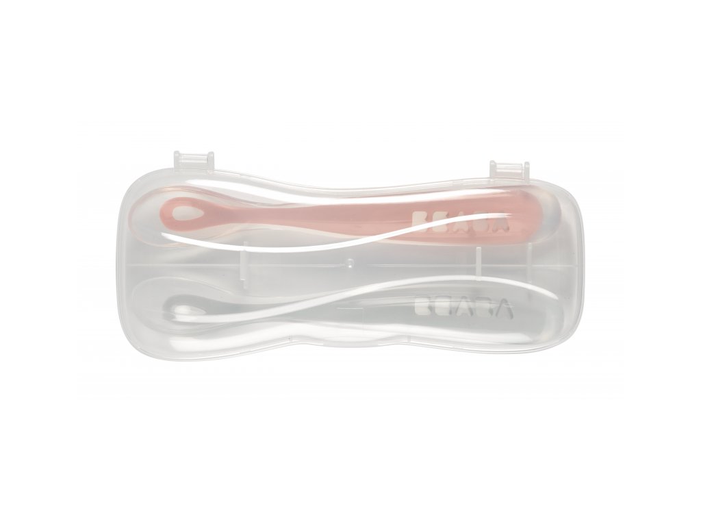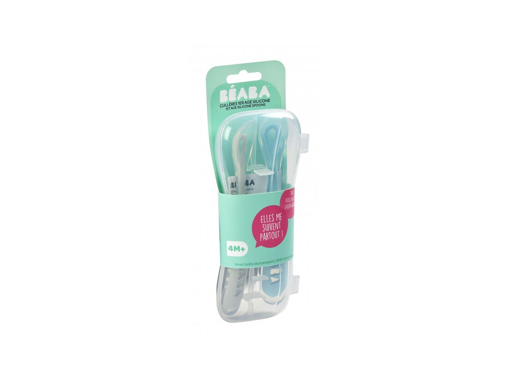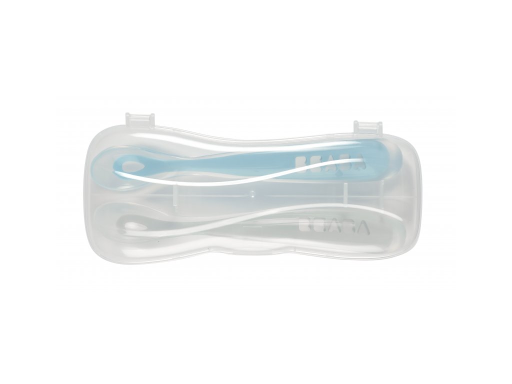 A legkisebbeknek szánt szilikon kanalak kíméletesek az érzékeny gyermekínyhez, és a cumisüvegről a kanálra való zökkenőmentes átmenetre tervezték. A hosszú nyél megkönnyíti a szülő számára a merítést a tálból és a pohárból a kéz bepiszkolása nélkül. A praktikus tok lehetővé teszi a kanalak higiénikus szállítását például a pelenkázótáskában.