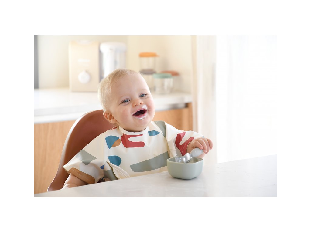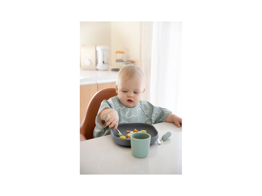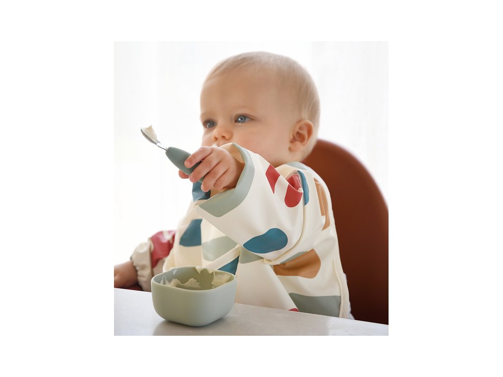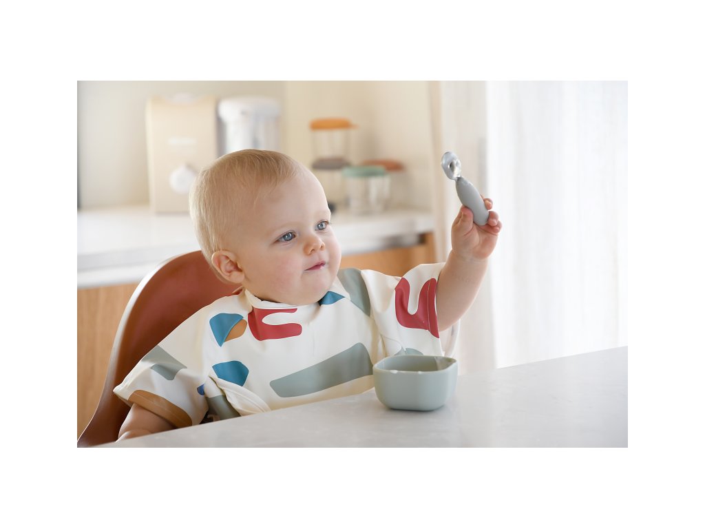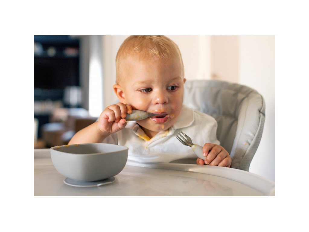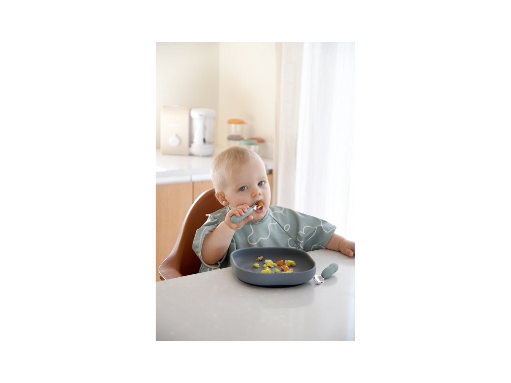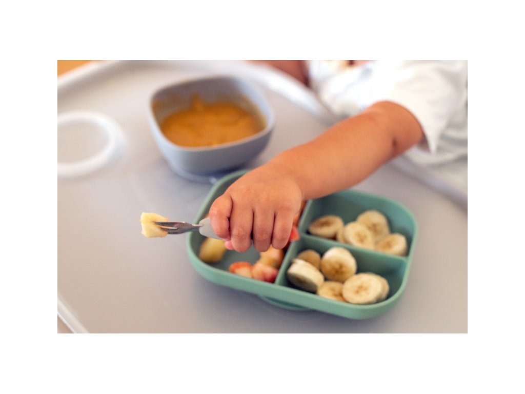 Az első, minőségi rozsdamentes acélból készült, műanyag nyelű evőeszköz megkönnyíti a gyermek számára az átállást a kanállal való etetésről az evőeszköz használatára. A rozsdamentes acél villa és kanál könnyű, és az ergonomikus műanyag nyélnek köszönhetően a gyermekek könnyen megfoghatják. A sekély kanál ideális kis mennyiségű táplálék felvételére, amelyet a gyermek a szájába tud vinni. A villa lekerekített hegyei garantálják a biztonságos használatot.
