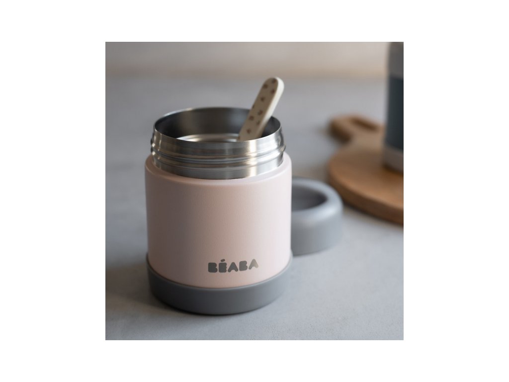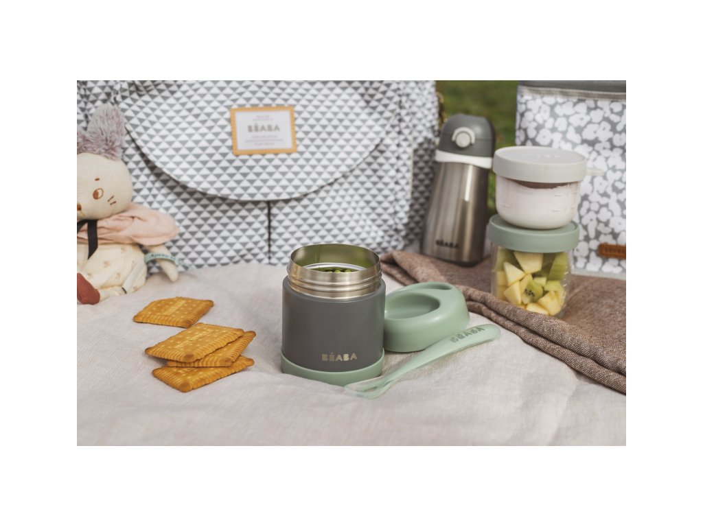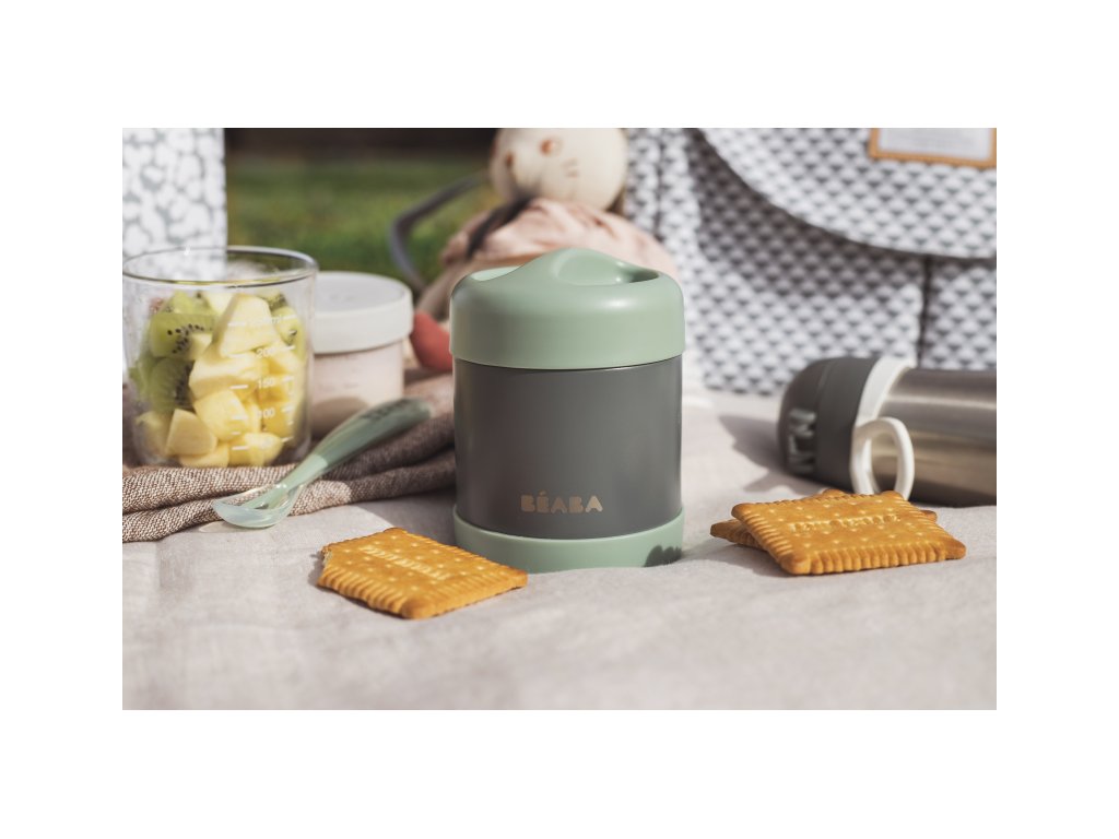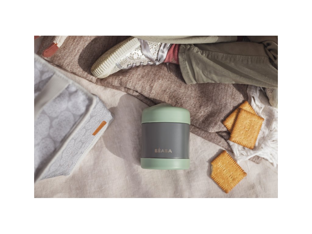 A Beaba vákuumtermosz kiváló minőségű, duplafalú acélból készült, ideális eszköz az egészséges étkezéshez útközben gyermekével. A termosz akár 6 órán át melegen, és akár 7 órán át hidegen tartja az ételt. A hermetikus záródás garantálja a biztonságos szállítást a táskában. A széles nyak megkönnyíti a termosz megtöltését és az étel kivételét.